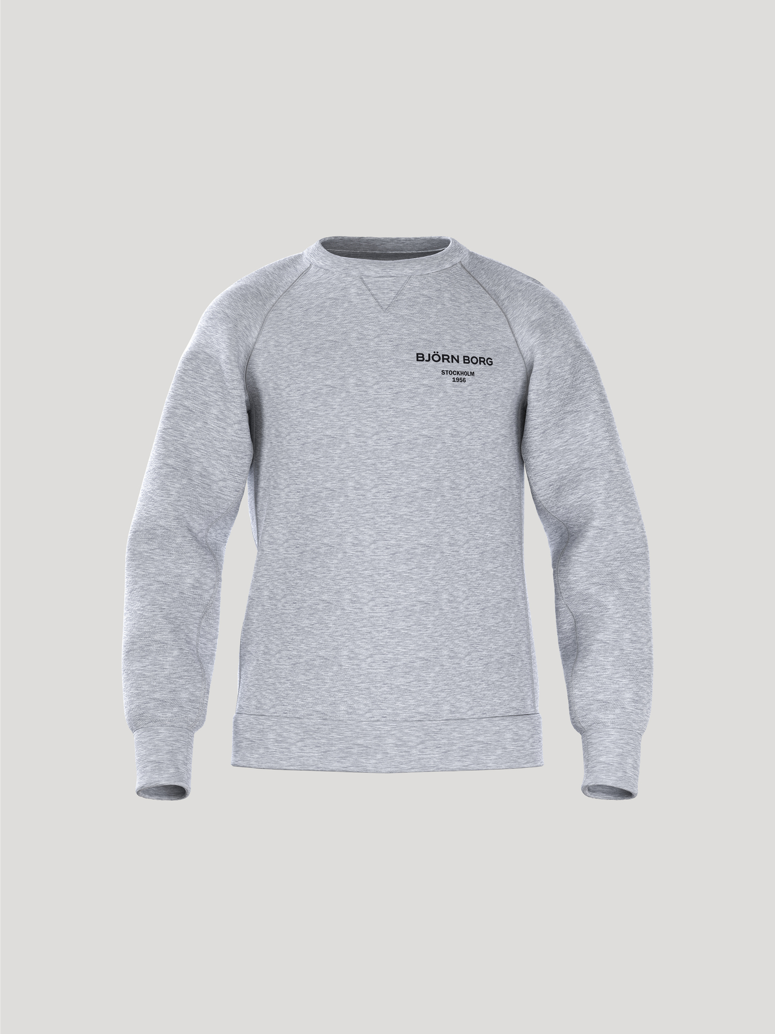 Stylish Björn Borg sweatshirt in a classic grey shade. The front of the sweatshirt features a subtle Björn Borg logo detail. It has long sleeves and a round neckline. The ribbed cuffs give the sweatshirt a refined silhouette, making it simple yet distinctive. The inside is made of soft, brushed cotton for added comfort.