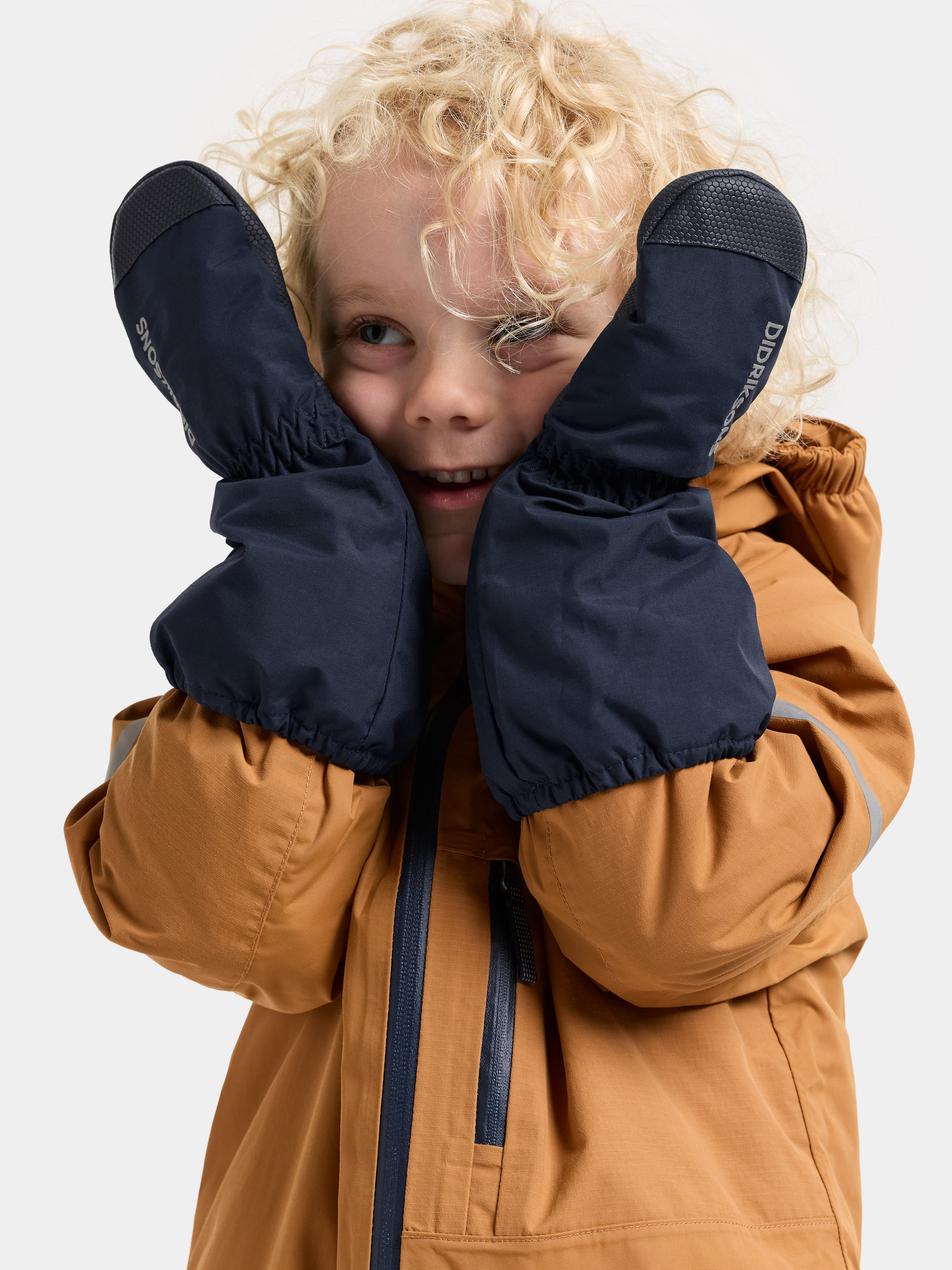 Didriksons Shell mid-season gloves are windproof and waterproof shell gloves for children, designed to keep little hands dry and comfortable during outdoor activities. The long cuff with elastic around the wrist ensures that the gloves have a secure fit, and they stay in place during play and active adventures. Taped seams prevent water from entering, while the reinforced palm provides a better grip on toys, sticks, or sleds. The PFC-free treatment repels moisture and dirt from the surface, making these gloves an environmentally friendly choice. These kids’ shell gloves are perfect for rainy, windy, or wet conditions.