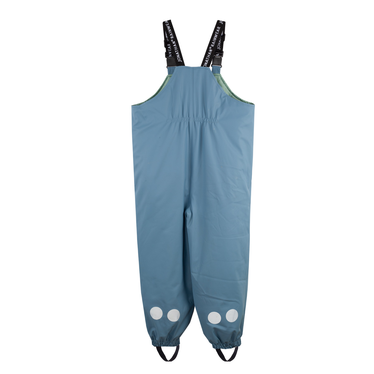 All the seams on this Jonathan rain overall are welded to be waterproof. The overall is comfortable to wear and the lightly padded lining keeps the little ones warm in cold weather.