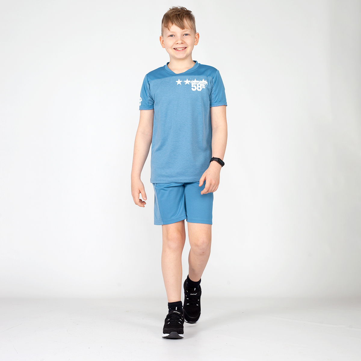 These Jonathan sports shorts are a perfect choice for gym class or sports hobbies! Their material is very elastic, which makes them comfortable to move in. The waist has an adjustable drawstring. Combine the shorts with Jonathan sports shirt that has the same cool, sporty text print.
