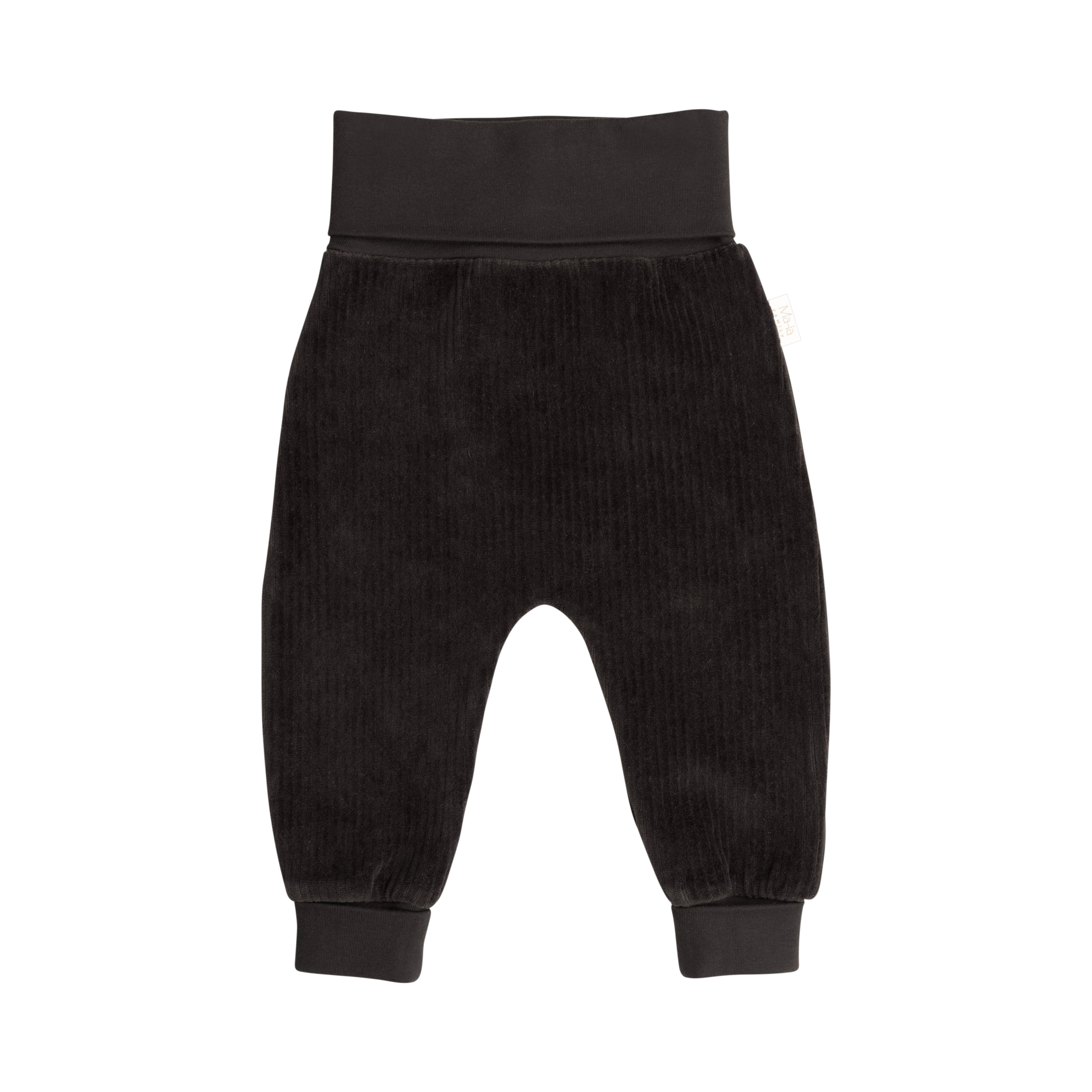 Dark grey babies’ full-length trousers have diaper room, a reversible waistline. The babies’ trousers are very versatile and comfortable, and they are made from very soft material.