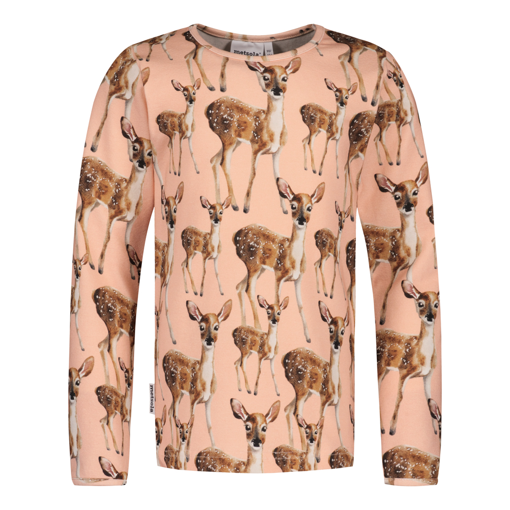 Metsola Bambi shirt is a sweet classic that will enchant you with its calm and soft look. The shirt features Henna Adel's beloved Bambi pattern, now in a new, light peachy background color. The gentle feel of the pattern makes it an easy-to-combine and timeless favorite.