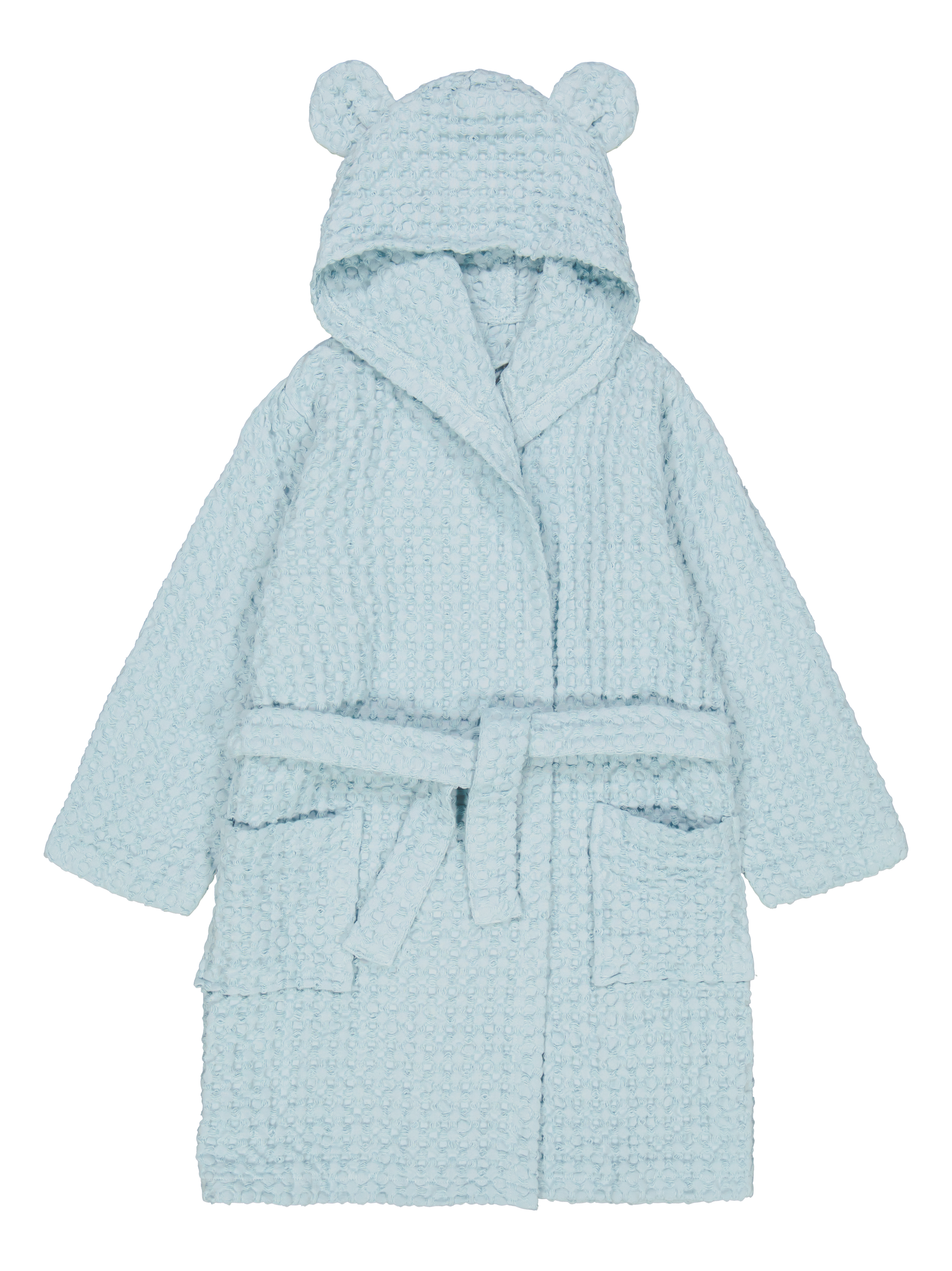 The bathrobe is made from pre-washed organic cotton waffle fabric, which feels light and comfortable against the skin. The sophisticated and fresh Icy Blue shade is beautifully suited to winter wear, and the pre-wash gives the fabric softness and a natural, relaxed look.