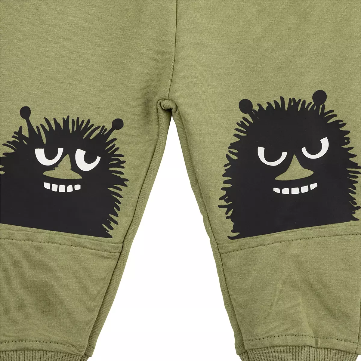 Comfortable and playful sweatpants. The prints on the knees feature a certain Moomin character that wouldn't miss an opportunity to pull a fun prank on everybody!