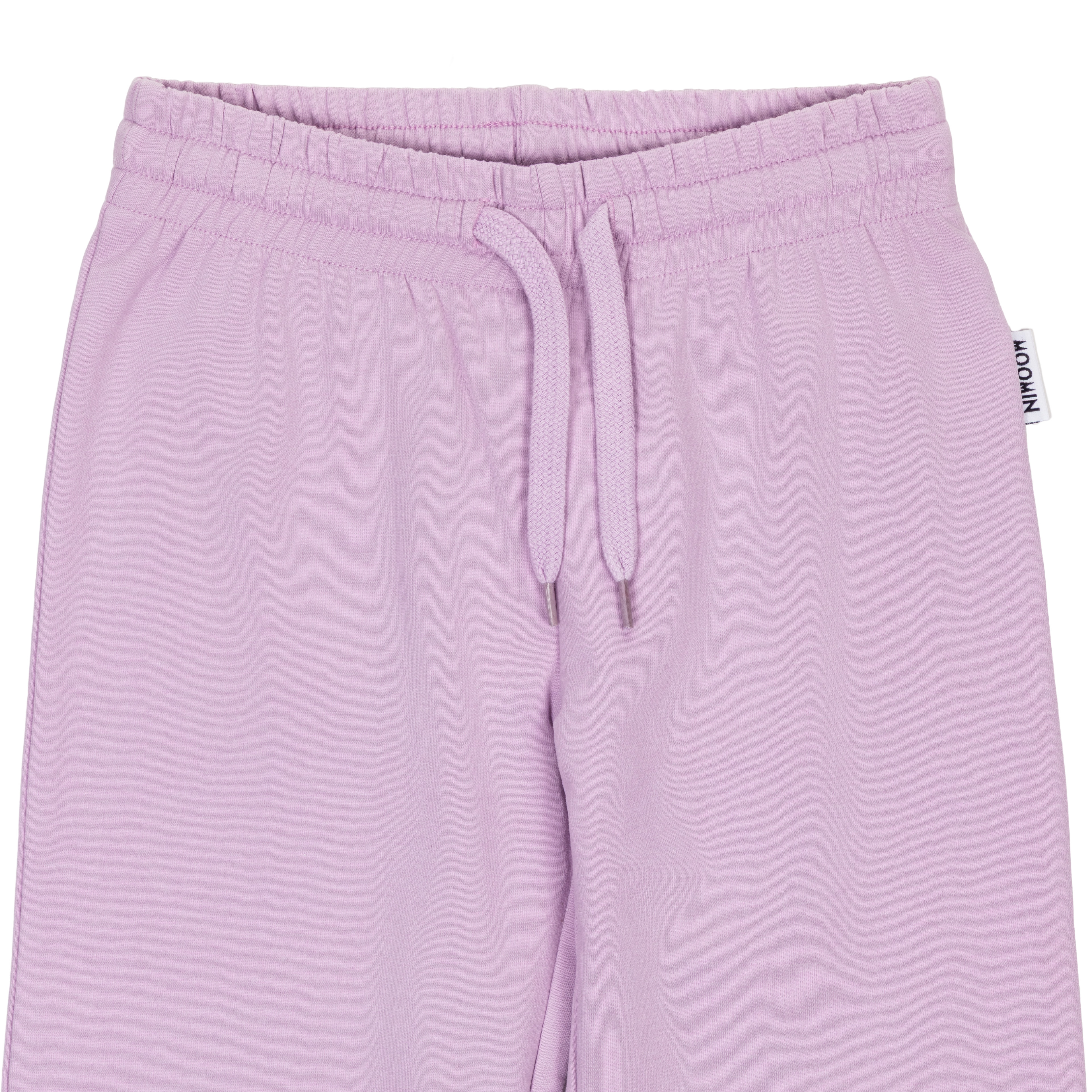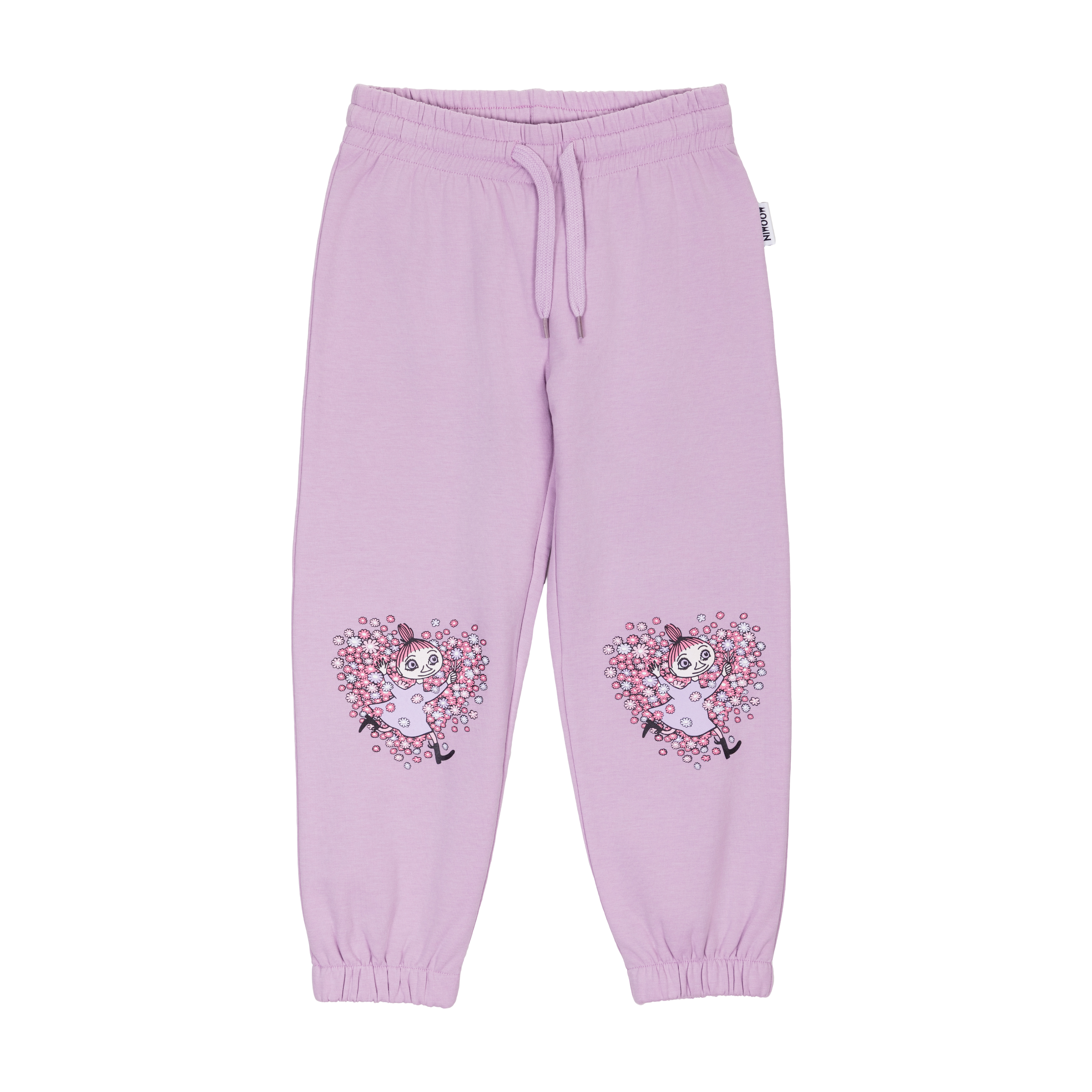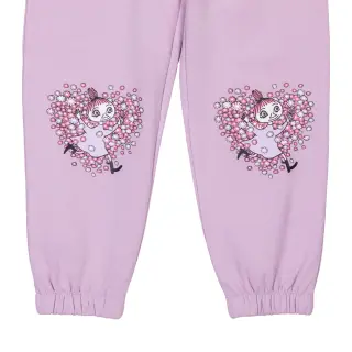 Children's Moominc college trousers that features the adorable Friends print. The warm and soft lilac colored pants are made from brushed French cotton.