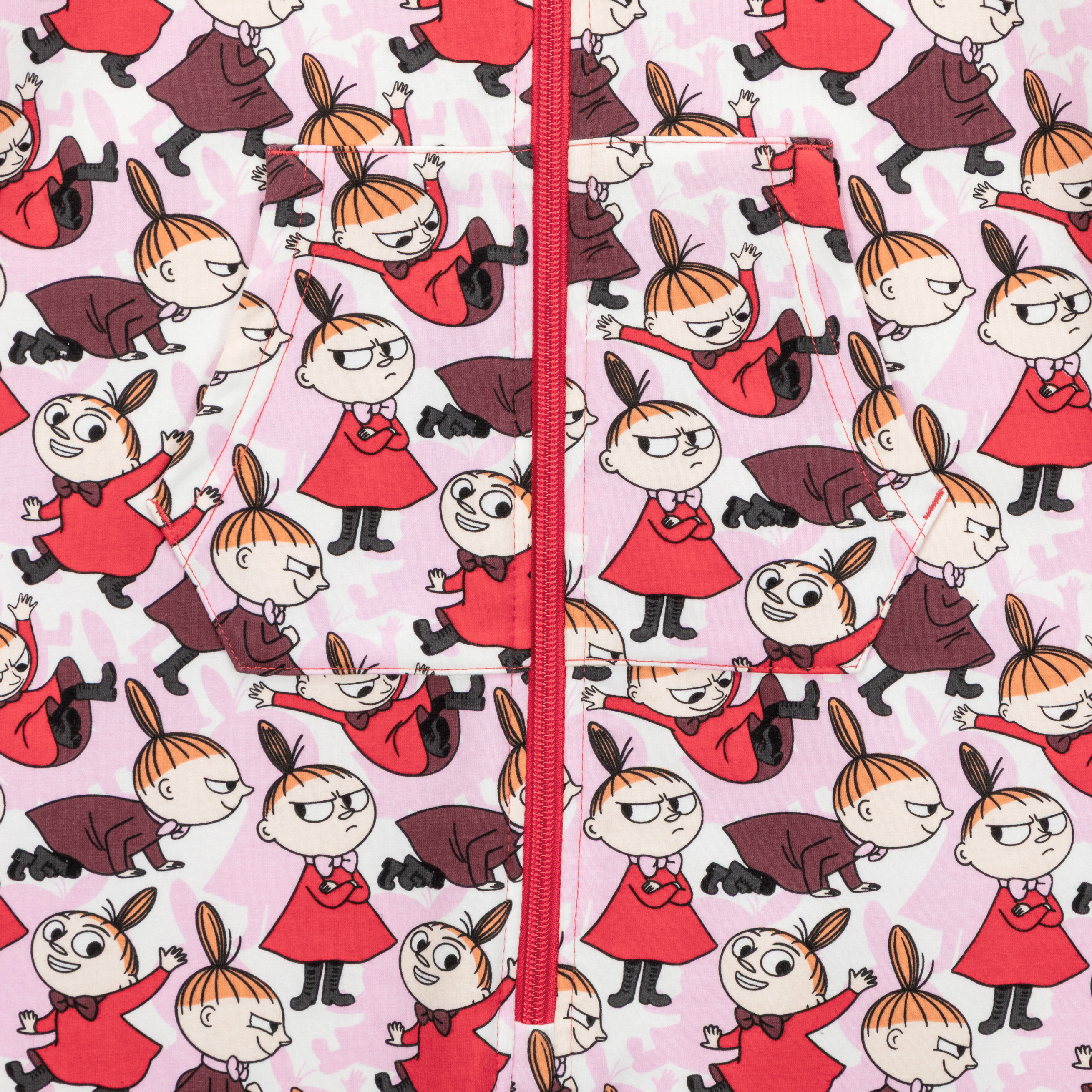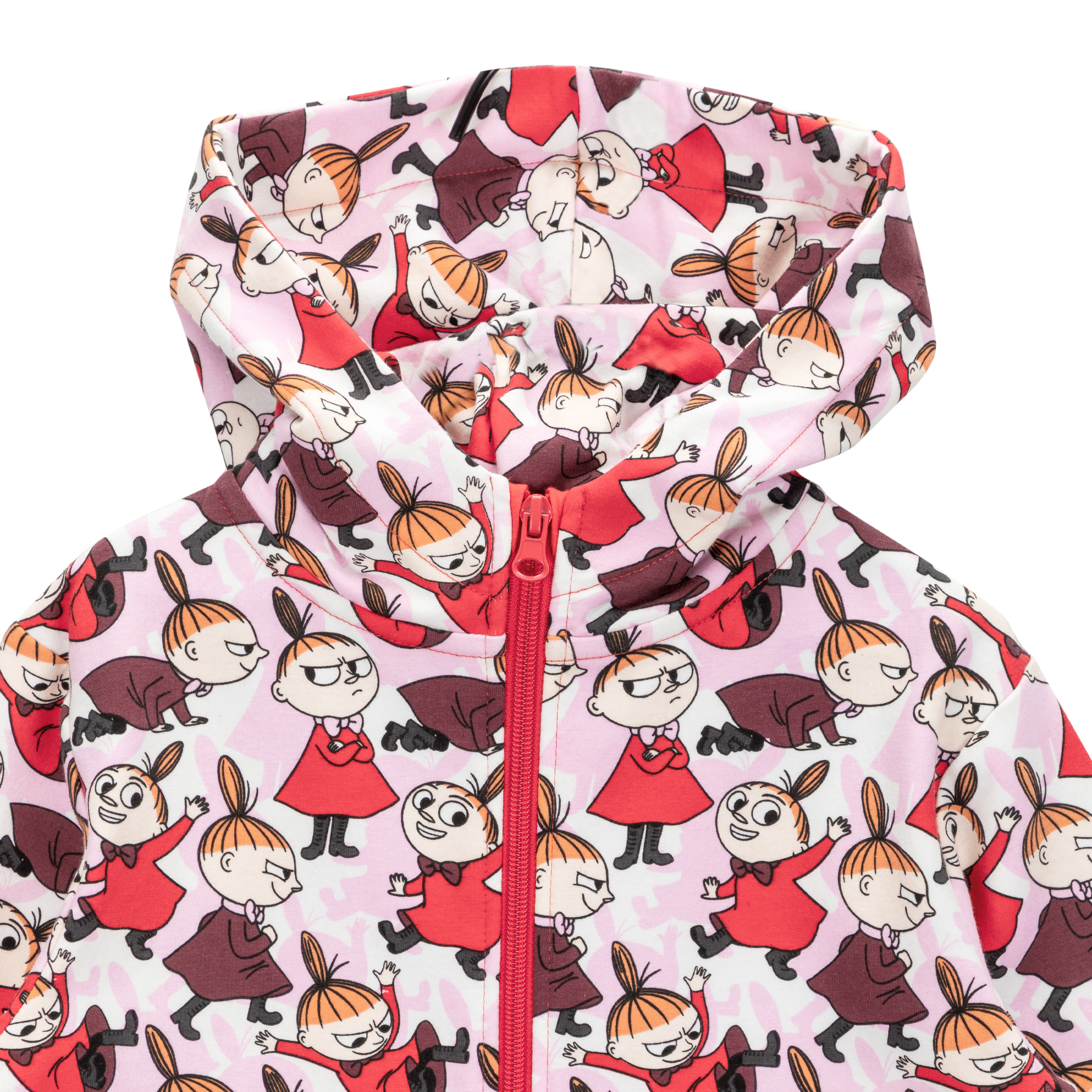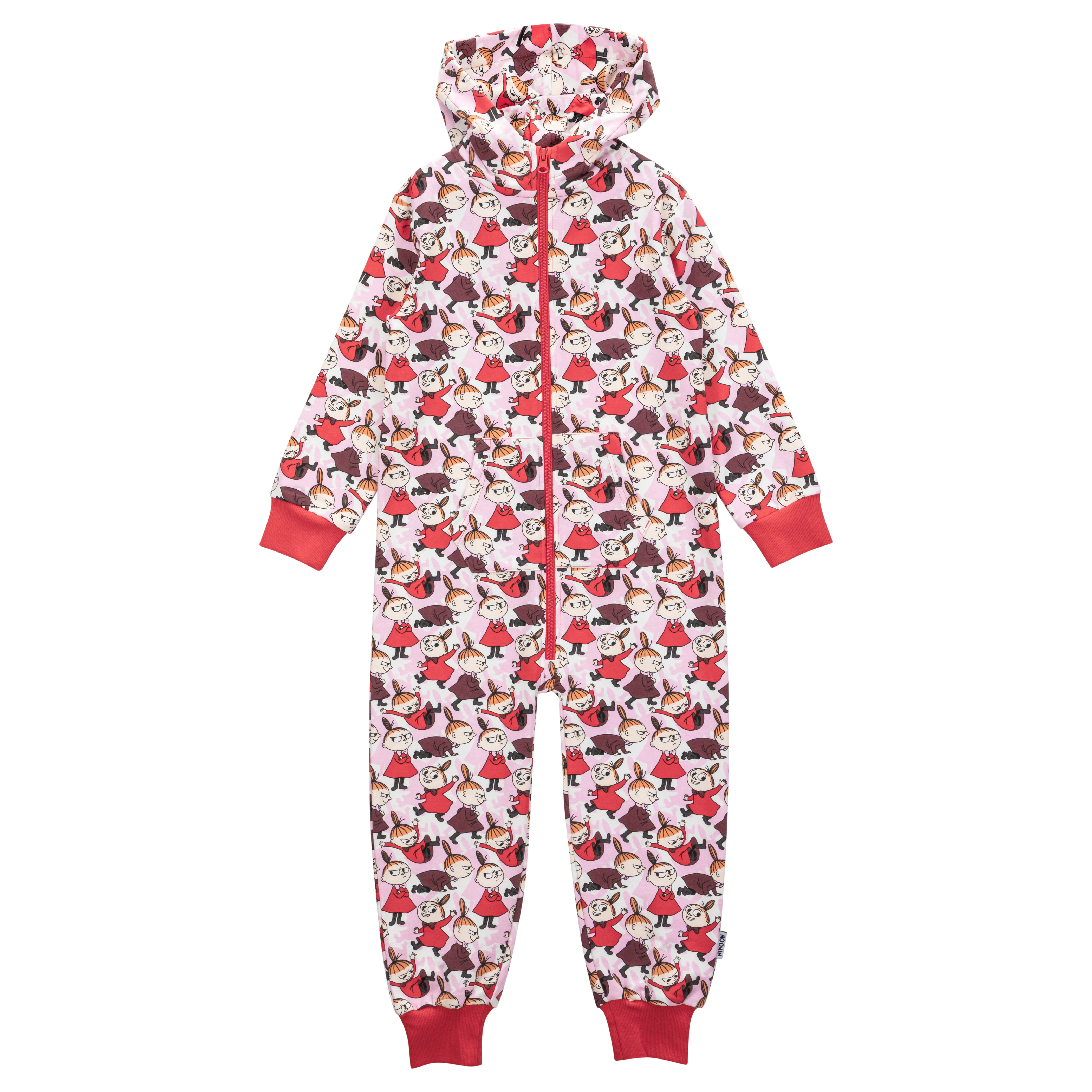 Red children’s overall has a hood, long sleeves and a zipper. The overall is brushed soft on the inside, and it has a lovely print of Little My playing with her shadow. This versatile overall is great to wear indoors, under winter clothes or for running errands.