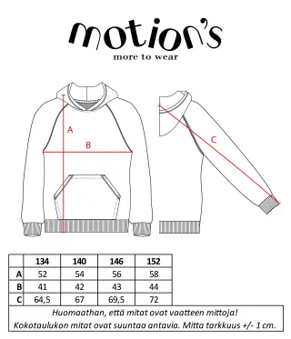 Motion's hoodie is a perfect choice for everyday wear! The material of the hoodie is soft organic cotton that is fully brushed from the reverse side which feels comfortable against the skin. The hoodie has a hood with lining and a kangaroo pocket. Create a comfortable, playful outfit by pairing this hoodie with Motion's college trousers.