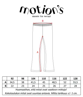Motion's flared leggings are a comfortable and practical choice for everyday activities! The waist is elasticated and the material is a soft organic cotton jersey with a brushed inside for extra comfort. Pair with a Motion's shirt for a stylish and comfy look!