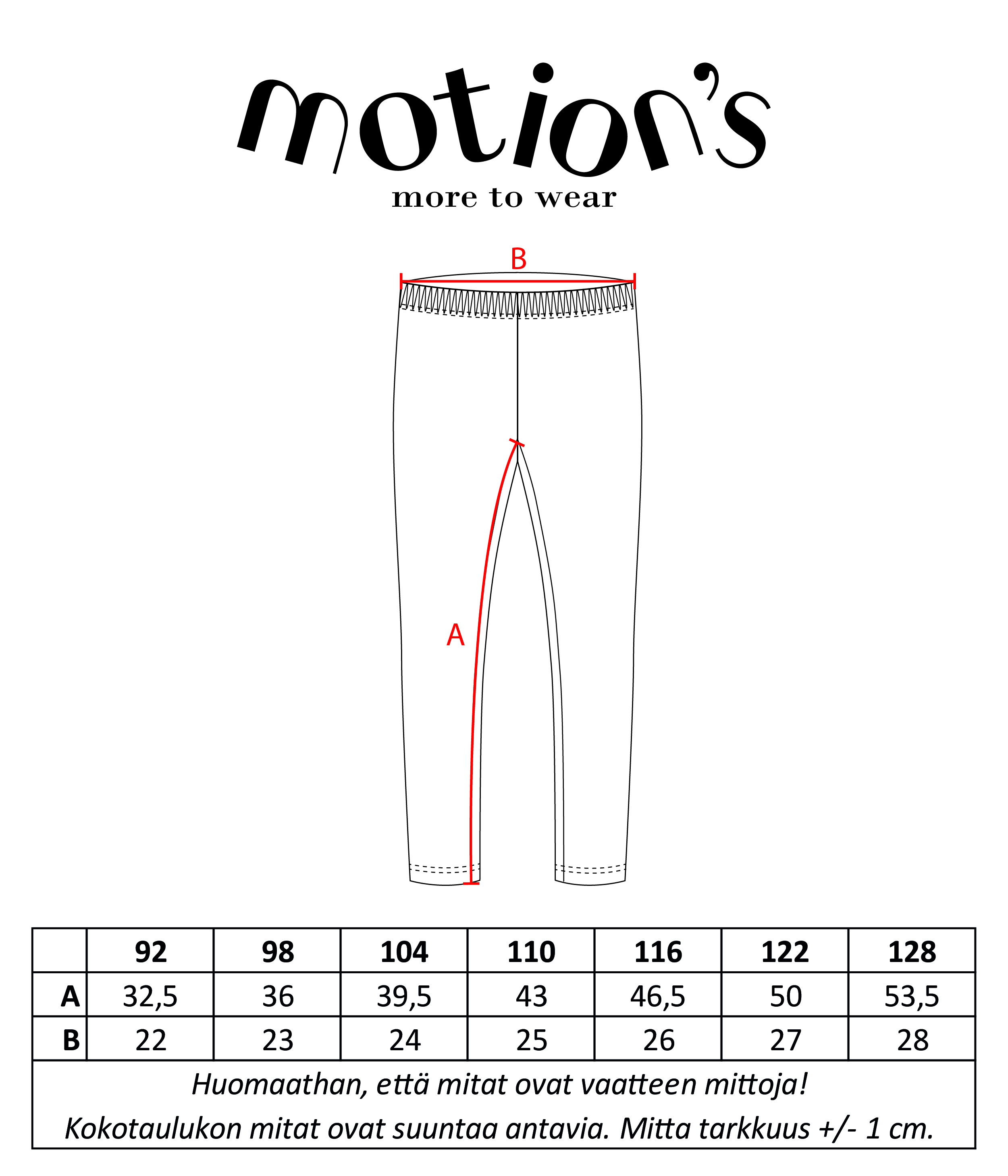 Motion's leggings are a versatile choice for everyday activities! These leggings feature a beautiful animall print and are made of soft and flexible organic cotton jersey. They also have a stretchy waistband that doesn't constrict. Create a comfy and stylish outfit by pairing these leggings with a Motion's top of your choice!