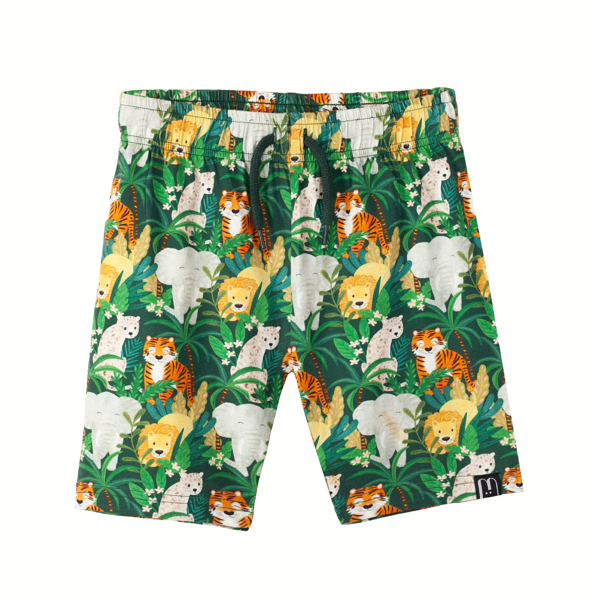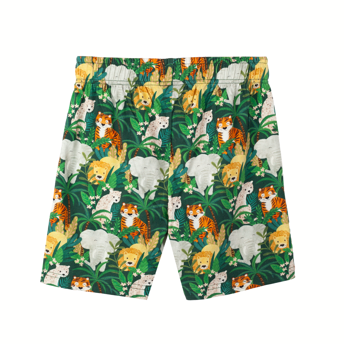 These shorts feature a playful jungle pattern. Made of soft and stretchy organic cotton, they are extremely comfortable to wear. They also have a stretchy waistband that doesn't constrict.