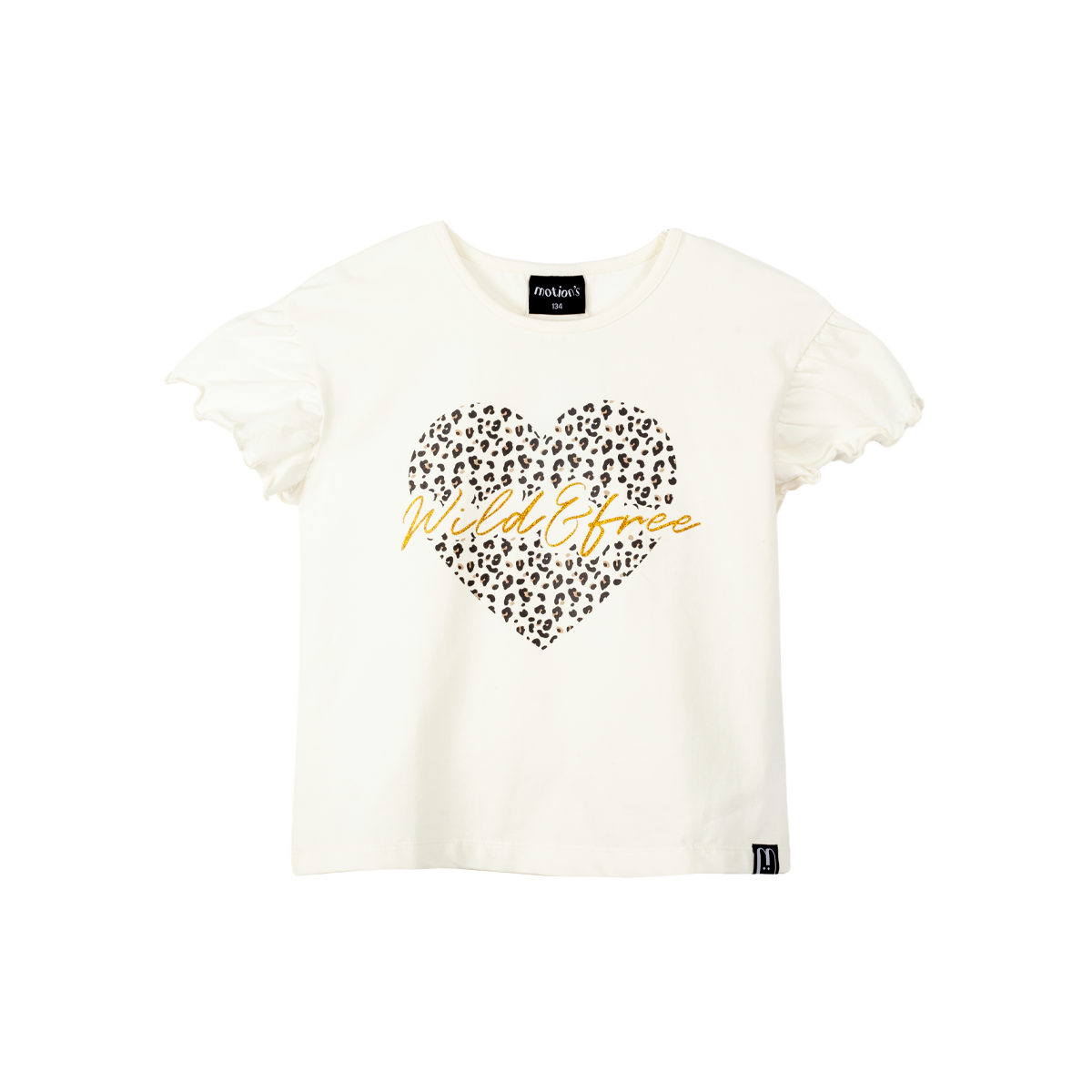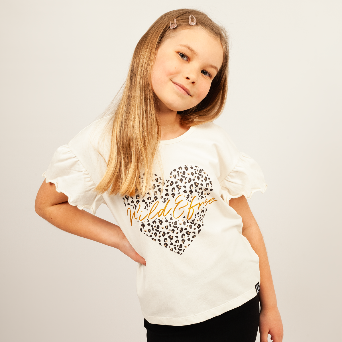 Made from soft and stretchy organic cotton, it feels comfortable against the skin. The shirt features charming ruffle sleeves and a heart print with text. This top is a relaxed everyday essential!