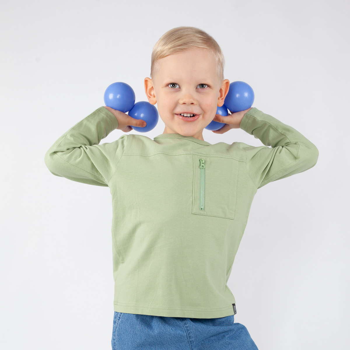 This Motion's shirt has a working pocket with a zipper on the chest. The shirt is made out of soft organic cotton, which feels comfortable against the skin.