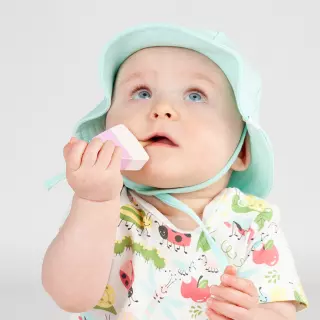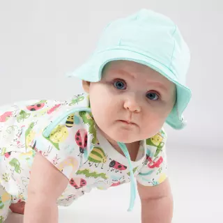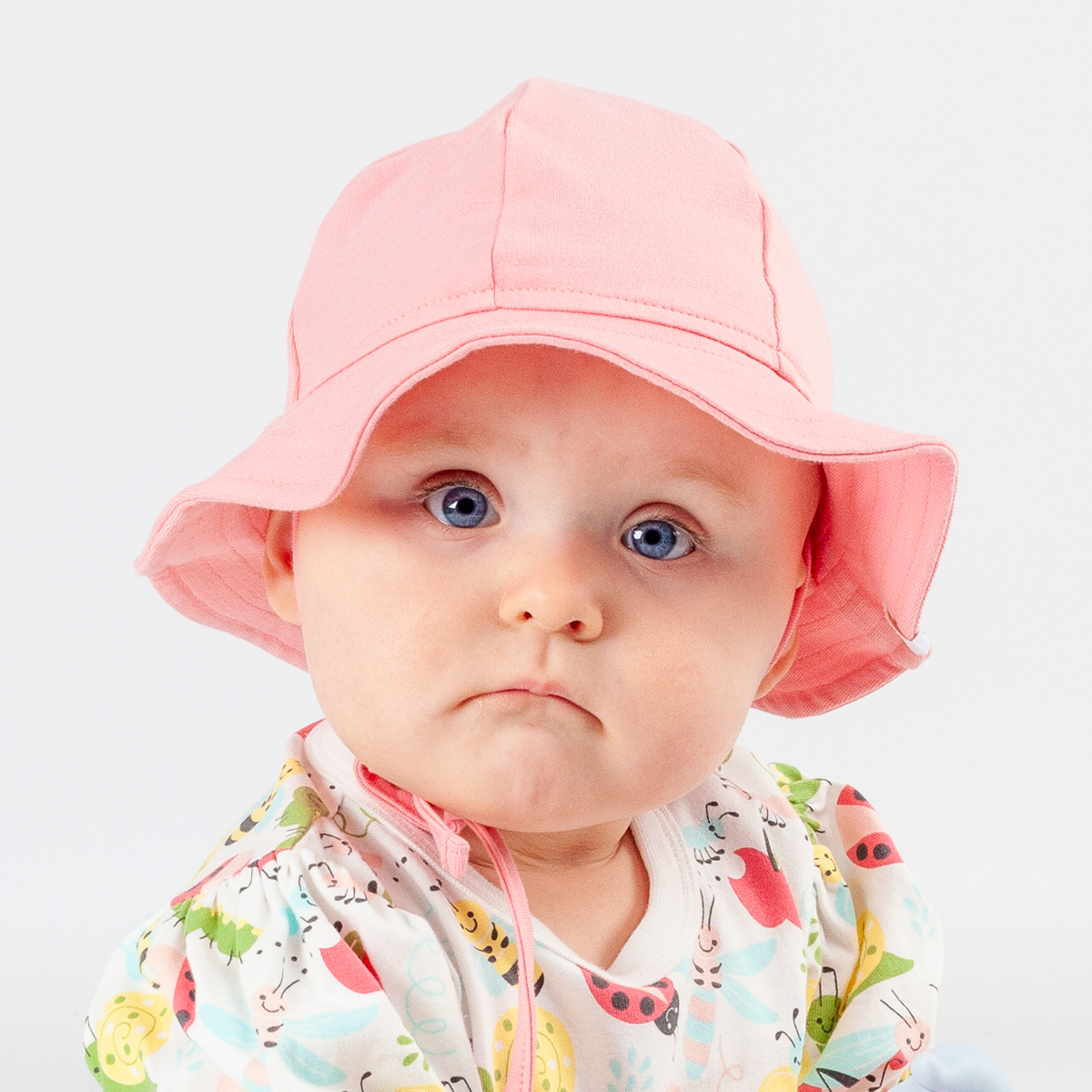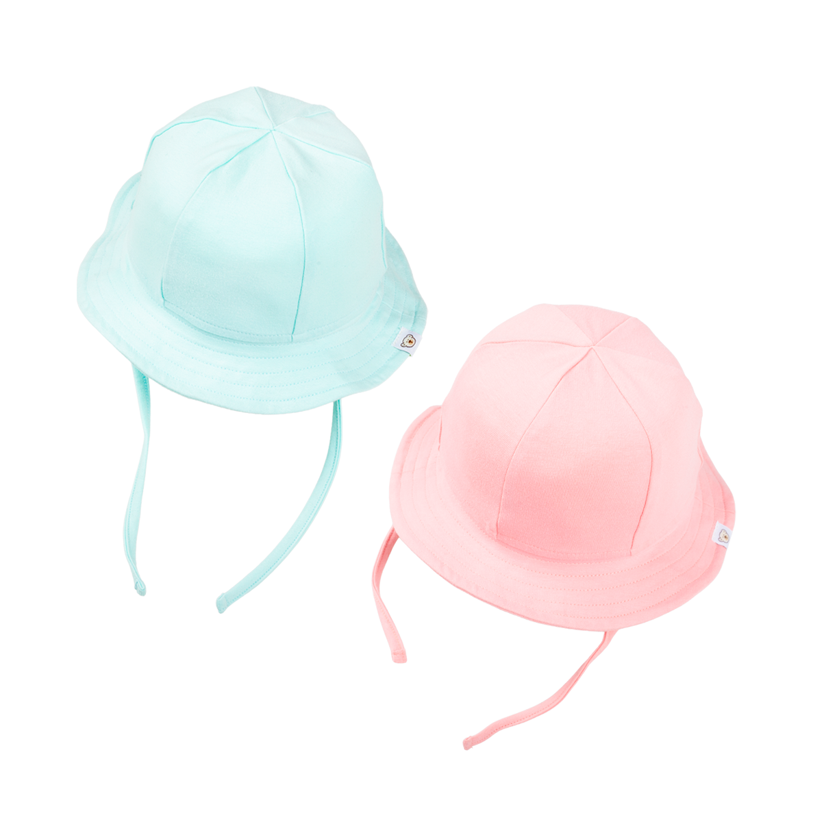 Nalle hats in pink and blue! Soft, organic cotton tricot hat is a cute and convenient choice for your baby. The hat, which can be tied under the chin with laces, stays on well and the brim protects the eyes from the sun.