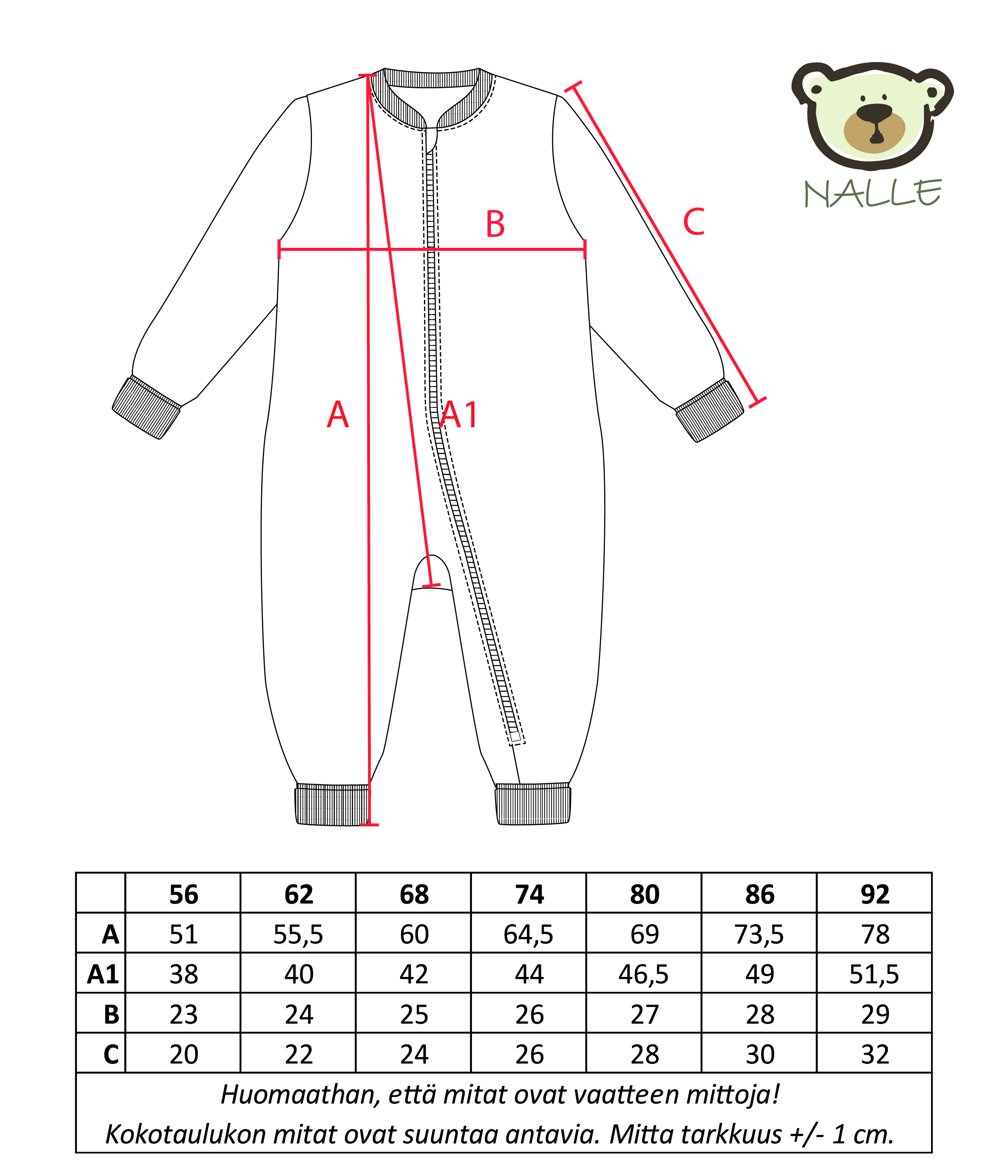 This Nalle romper is a must-have for the little one! It is super comfy and very cute! The double ended zipper makes it easy to put on. The sleeves and leg ends are adjustable with foldable rib. organic cotton feels soft against the skin.