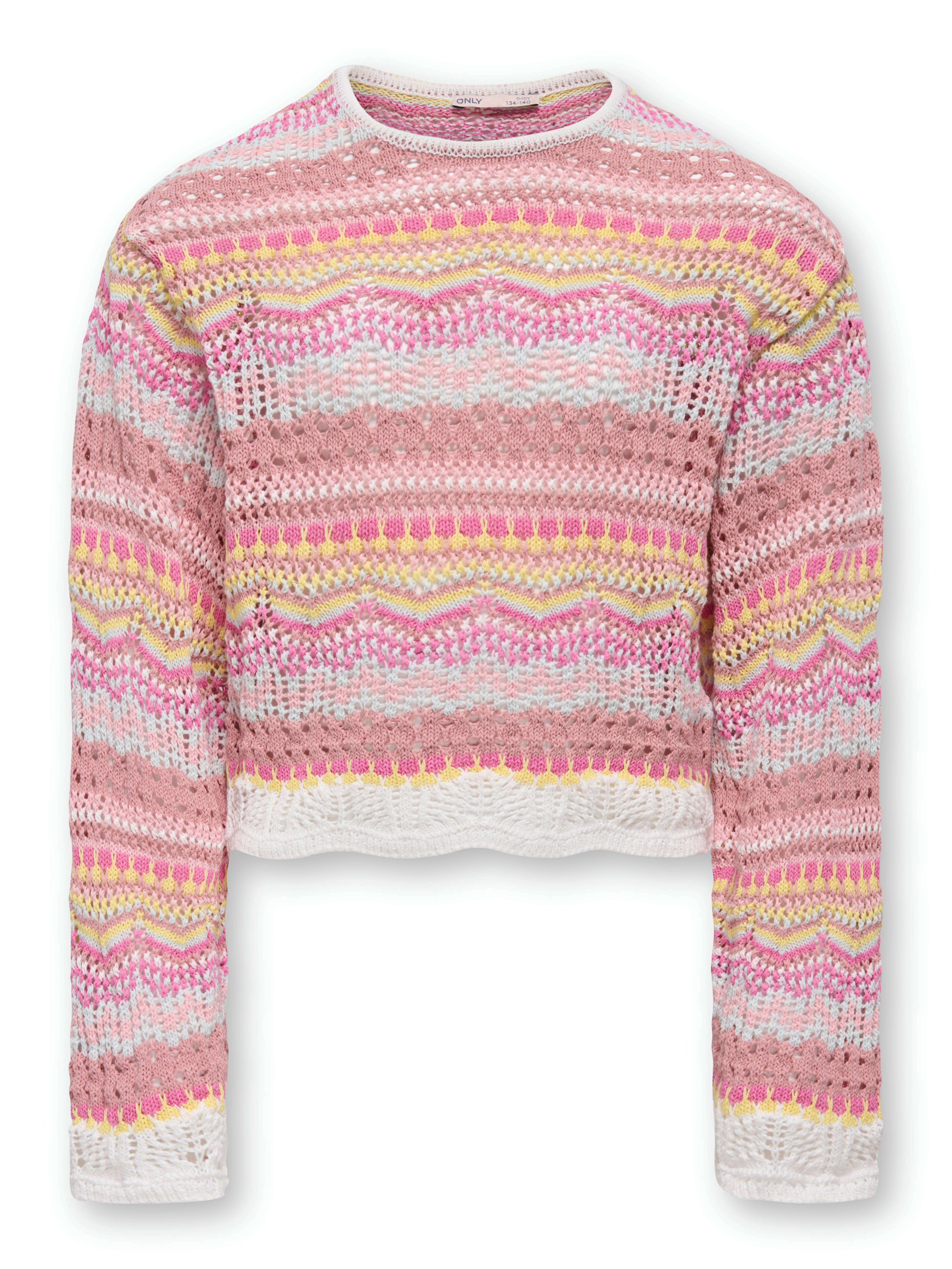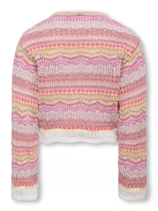 A beautiful Only Kids Girls knitted sweater in a soft color combination. The sweater is made from a soft cotton blend and features several different knit textures. This long-sleeved sweater is further enhanced with charming stripes and lovely colors.