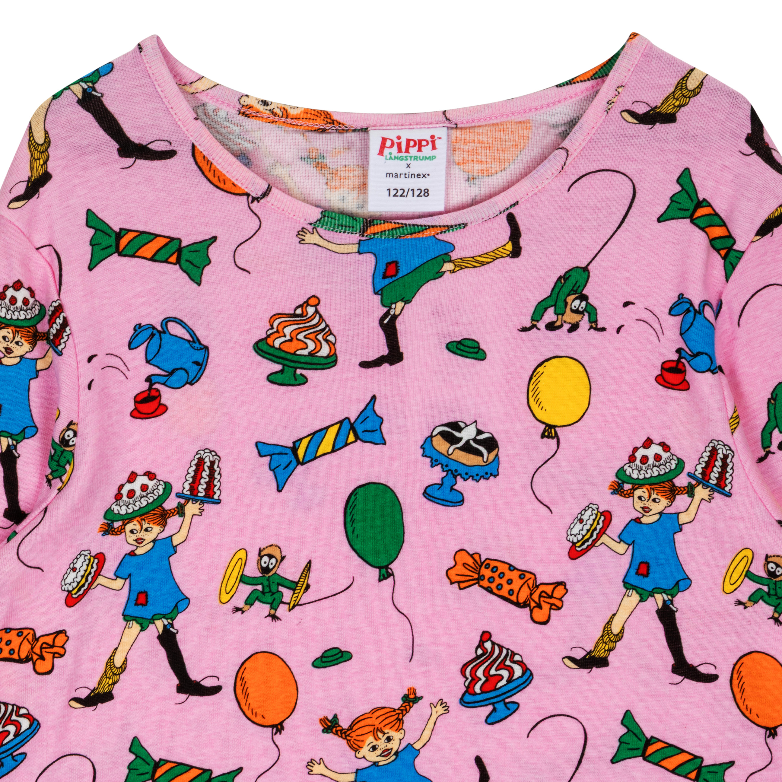 Pink children’s long-sleeved nightgown has a comfortable fit. The nightgown features the joyful Party print.