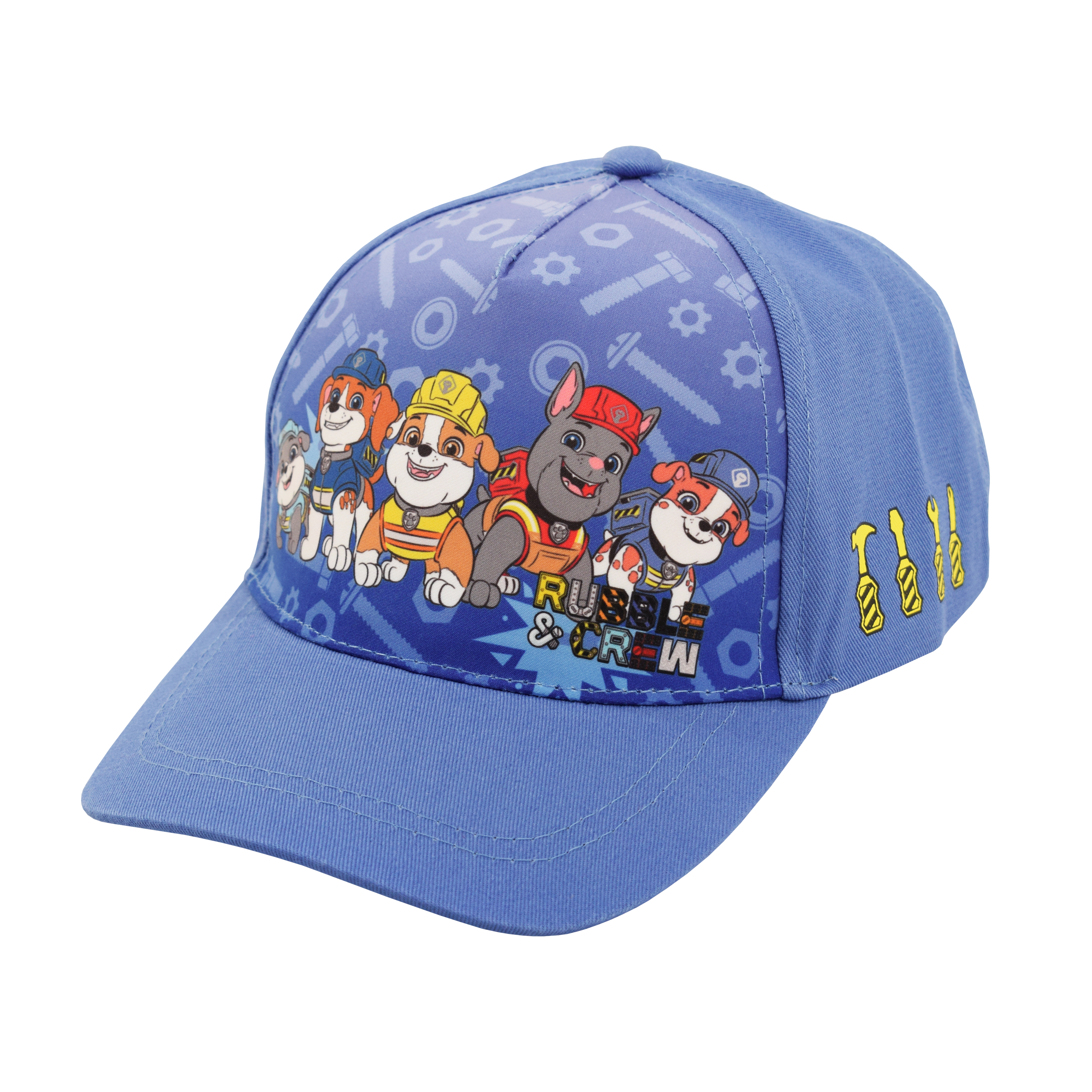 Paw Patrol themed cap. A cheerful and practical Paw Patrol cap, perfect for little adventurers! The blue cap features beloved characters from the series decorating the front, adding a fun and colorful touch. The fit can be easily adjusted with the fastening at the back, and the curved brim provides effective protection from the sun.
