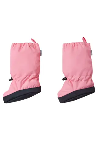Reima easy-to-wear babies' Hiipii booties with recycled fibres. Durable, water-repellent and windproof, with a light insulation and comfortable lining.These flexible, warm and comfortable babies' booties are ideal for pram and pushchair rides. They're made from a wind- and waterproof soil-repellent material that protect against splashes and light rain. They're also easy to pull on and stay in place thank to the adjustable sections at the ankles!