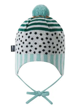 Super cute Reima Moomin Yngst beanie combines warmth of wool and the softness of a cotton jersey lining.