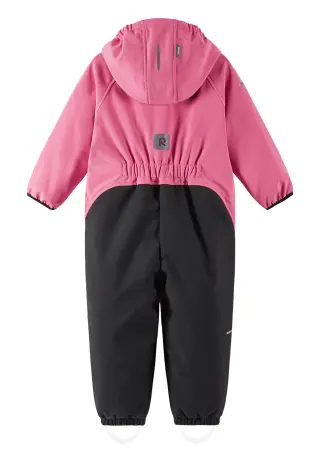 Reima Mjosa toddlers' softshell overall blocks wind and keeps out light rains. Made from waterproof material containing recycled fibres. Breathable, soft and comfortable. Durable reinforcements on the legs.