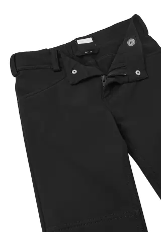 Kids' softshell trousers with a wind-blocking finish. They feature a comfortable fleece lining for extra warmth. Straight cut with an easy-to-use zip fly.