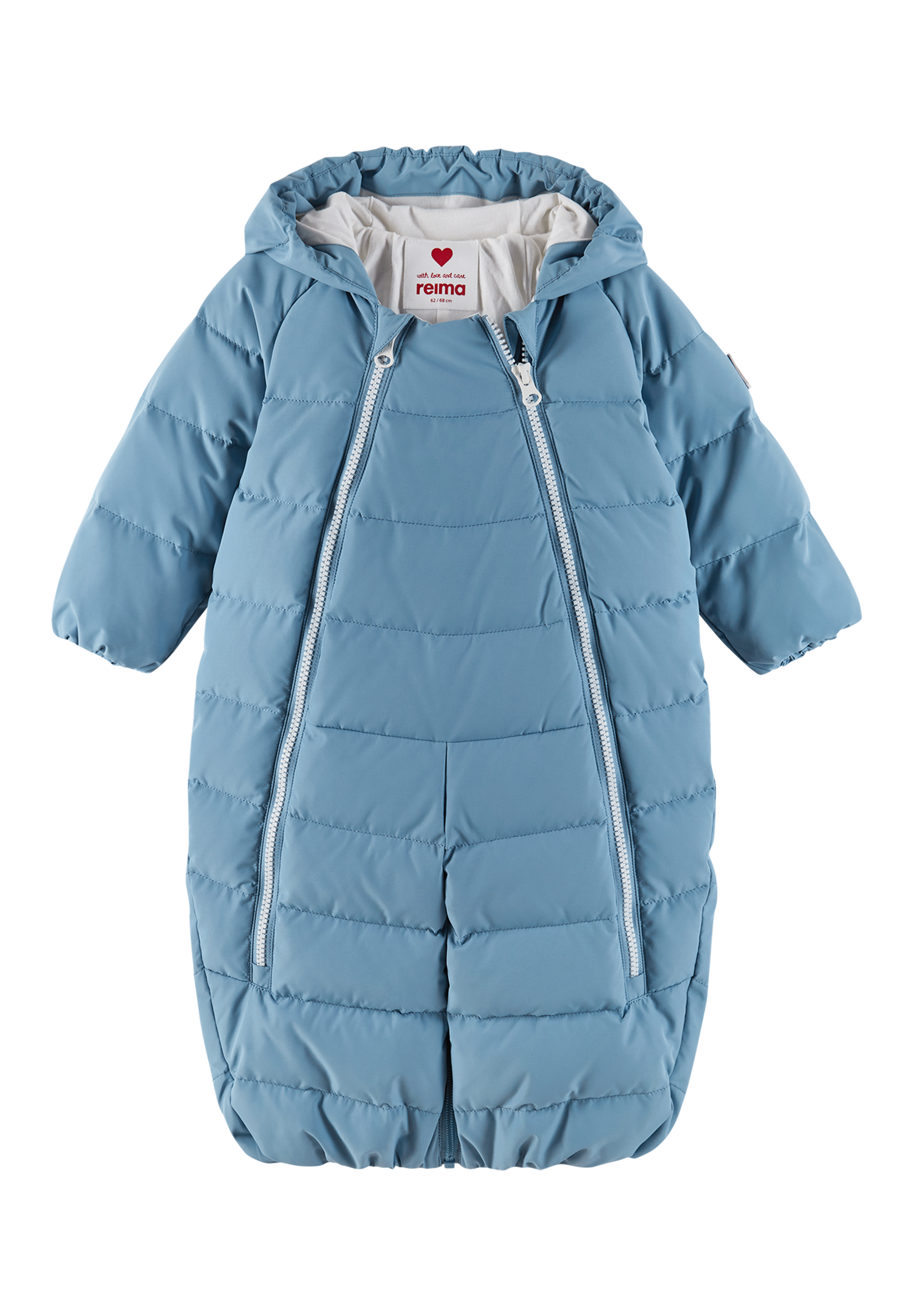 This down overall for babies is ideal for cosy pram rides during late autumn and early winter. It's warmly insulated with responsible down and has two full-length zippers for easy dressing. Made from a wind- and waterproof, very breathable material, this lightweight Reima down suit keeps the wind at bay and feels comfortable. The material has a water and dirt repellent surface that makes life easier for parents, too.
