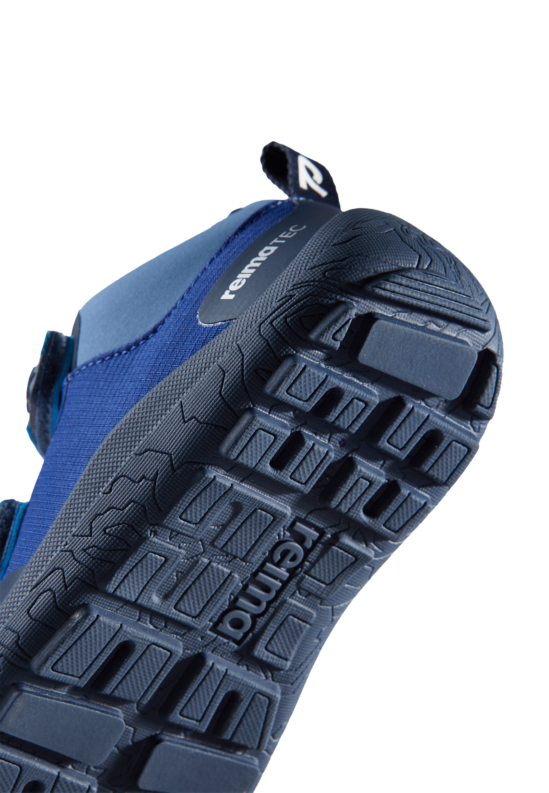 Let your child conquer new trails in the kids' ReimaTec barefoot shoes Viikari. These shoes feature a waterproof membrane to defy changing weather and a barefoot last with zero heel drop for a natural stance. The hook-and-loop construction makes them easy to put on. A flexible sole, wide toe box, and grippy rubber outsole enable unrestricted natural movement. Inside, removable insoles with Happy Fit print help find the perfect fit. Reflective details add visibility to their steps.