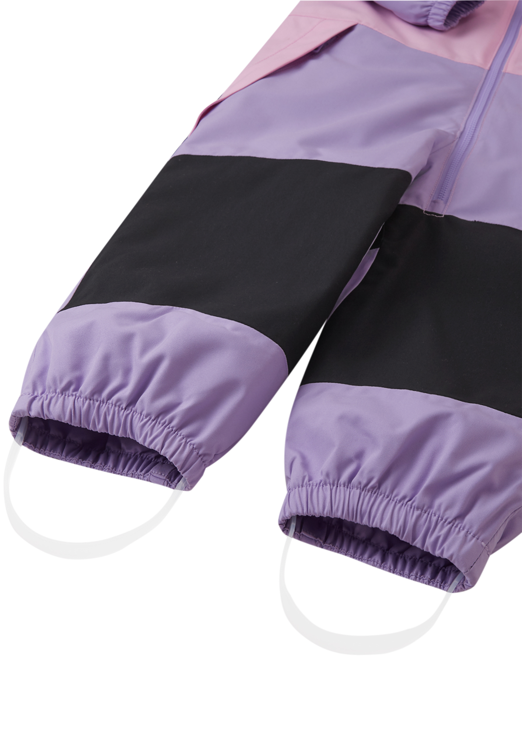 Enjoy the great outdoors with the toddler waterproof jumpsuit Tuusula, with all seams sealed for ultimate protection. Crafted from durable windproof material with reinforcements, it features a protective hood that's detachable for safety. The suit includes a smooth lining and long zipper to ease dressing. The elastic waistband and detachable silicone foot loops, plus elastic cuffs and leg ends, make for a snug fit. Designed to repel water and dirt, it keeps your child clean and dry during their adventures while the zip pocket safeguards their Most Important Item, whatever it may be!