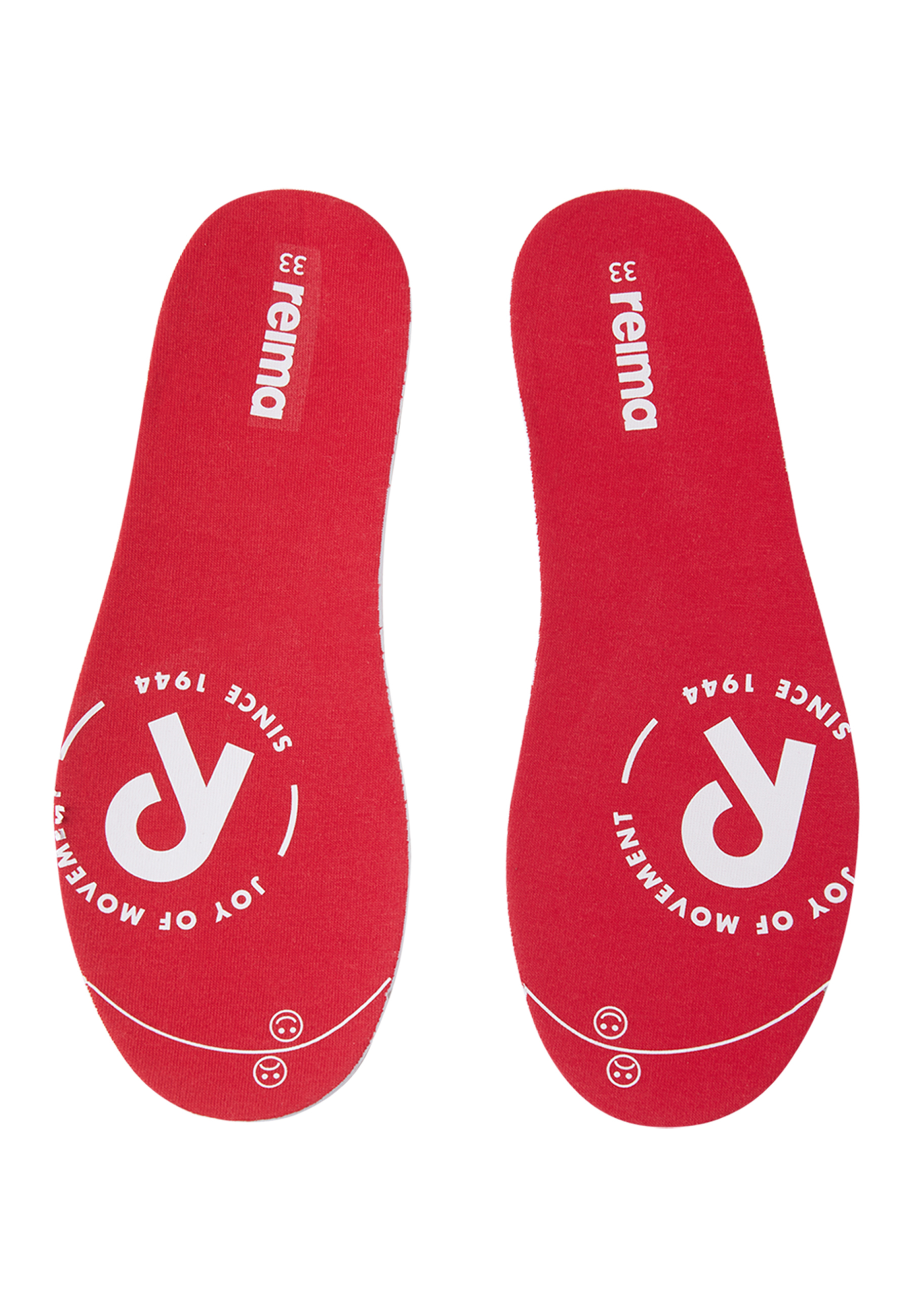 - Removable, molded EVA insoles with jersey lining and Happy Fit print help to find the correct size