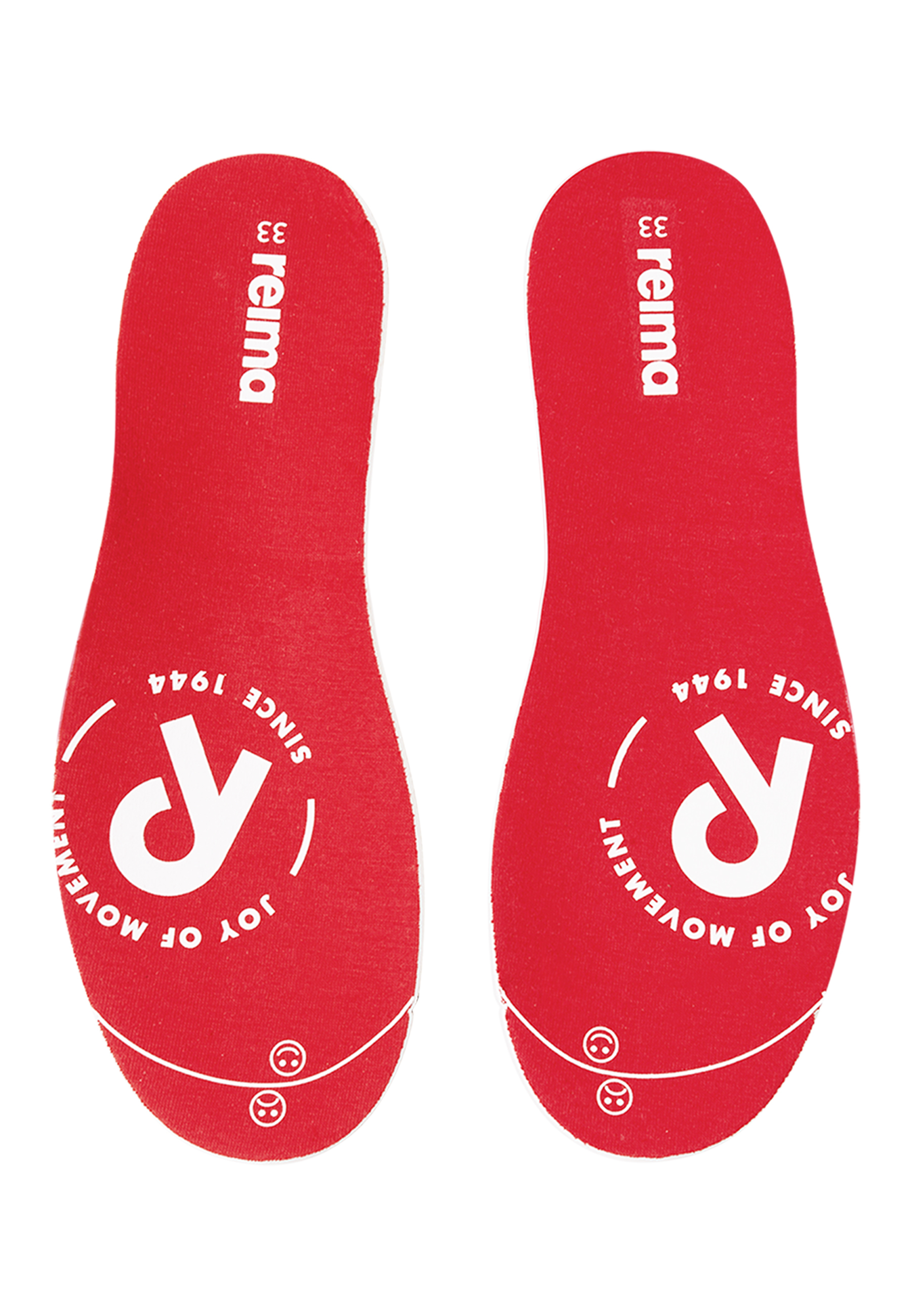 Removable, molded EVA insoles with jersey lining and Happy Fit print help to find the correct size
