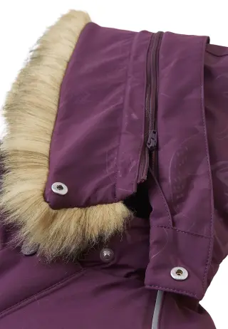 - Safe, detachable and adjustable hood with detachable faux fur trim
