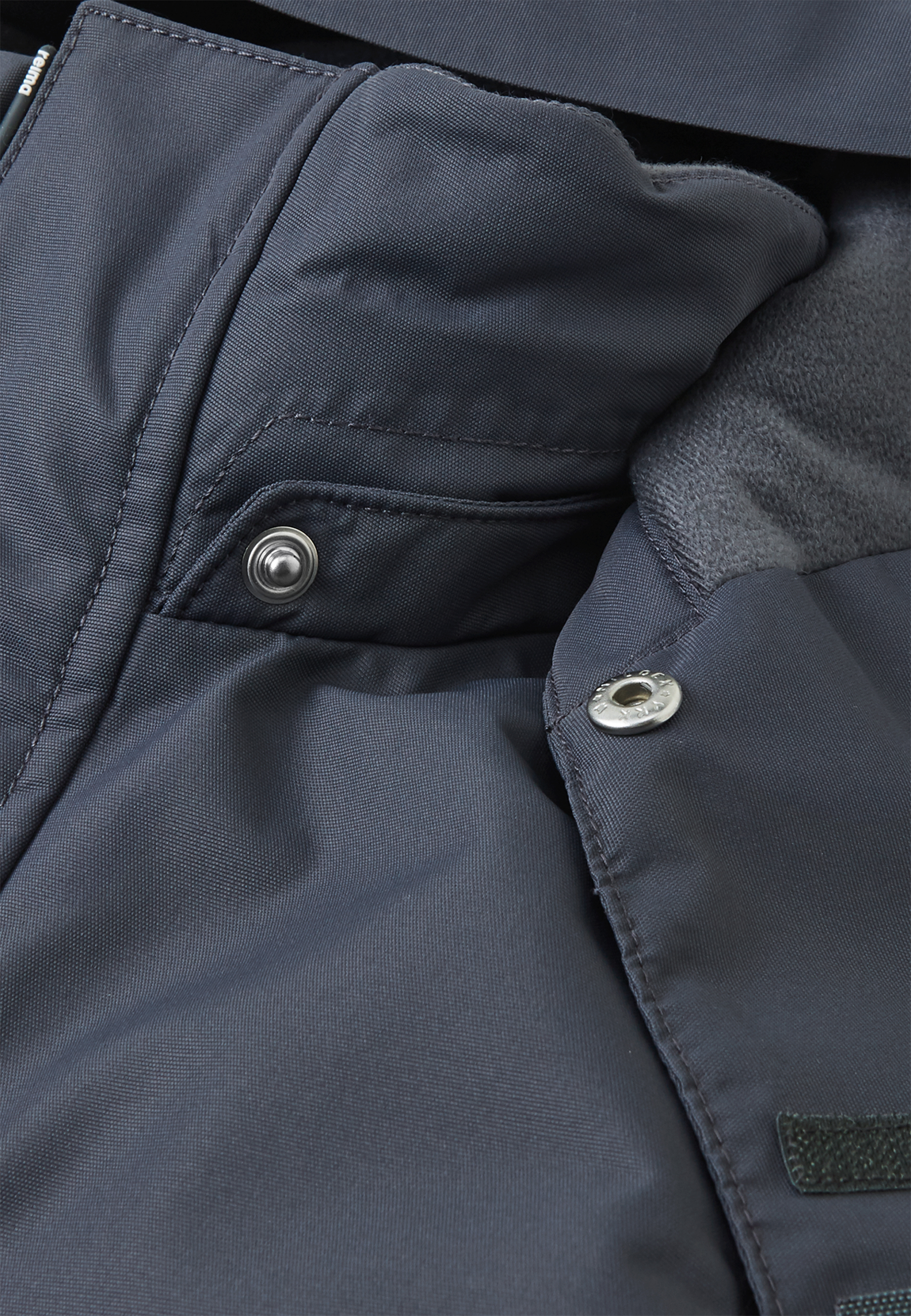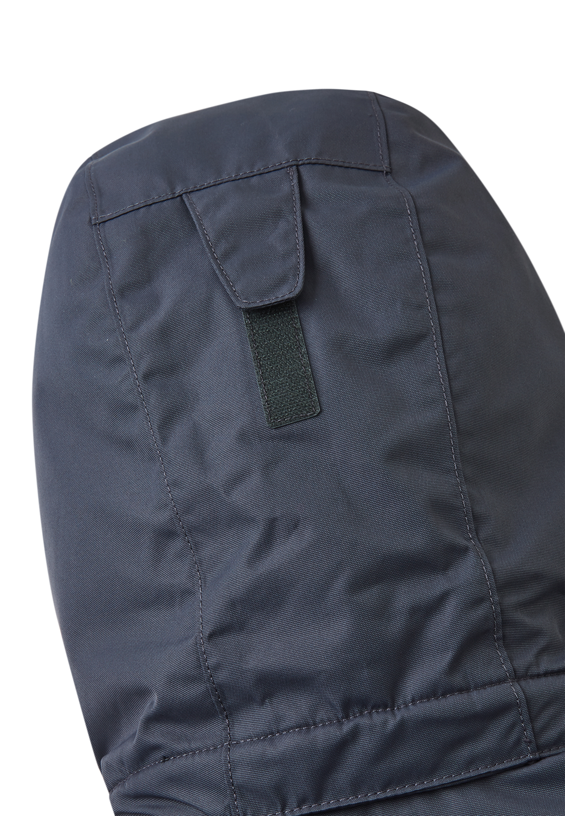 - Keep the leg hem out of the way by fastening it with a snap to the snow lock.