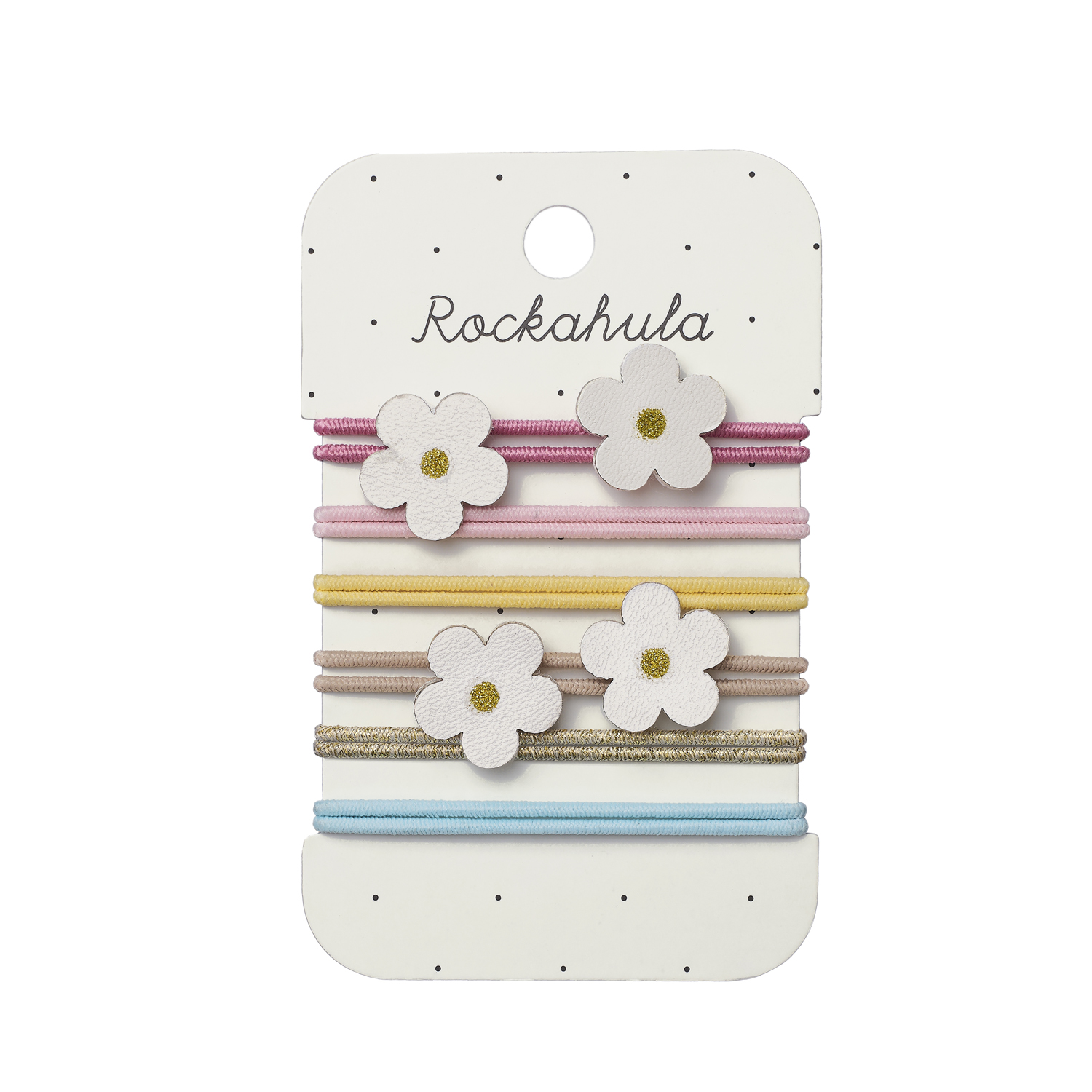 Our sweet and adorable Rockahula Daisy Daisy Mini Elastic Ponies is the perfect summer essential! This set includes 12 mini hair elastics, with four (4) adorned with a delightful daisy design for a fresh, floral touch.