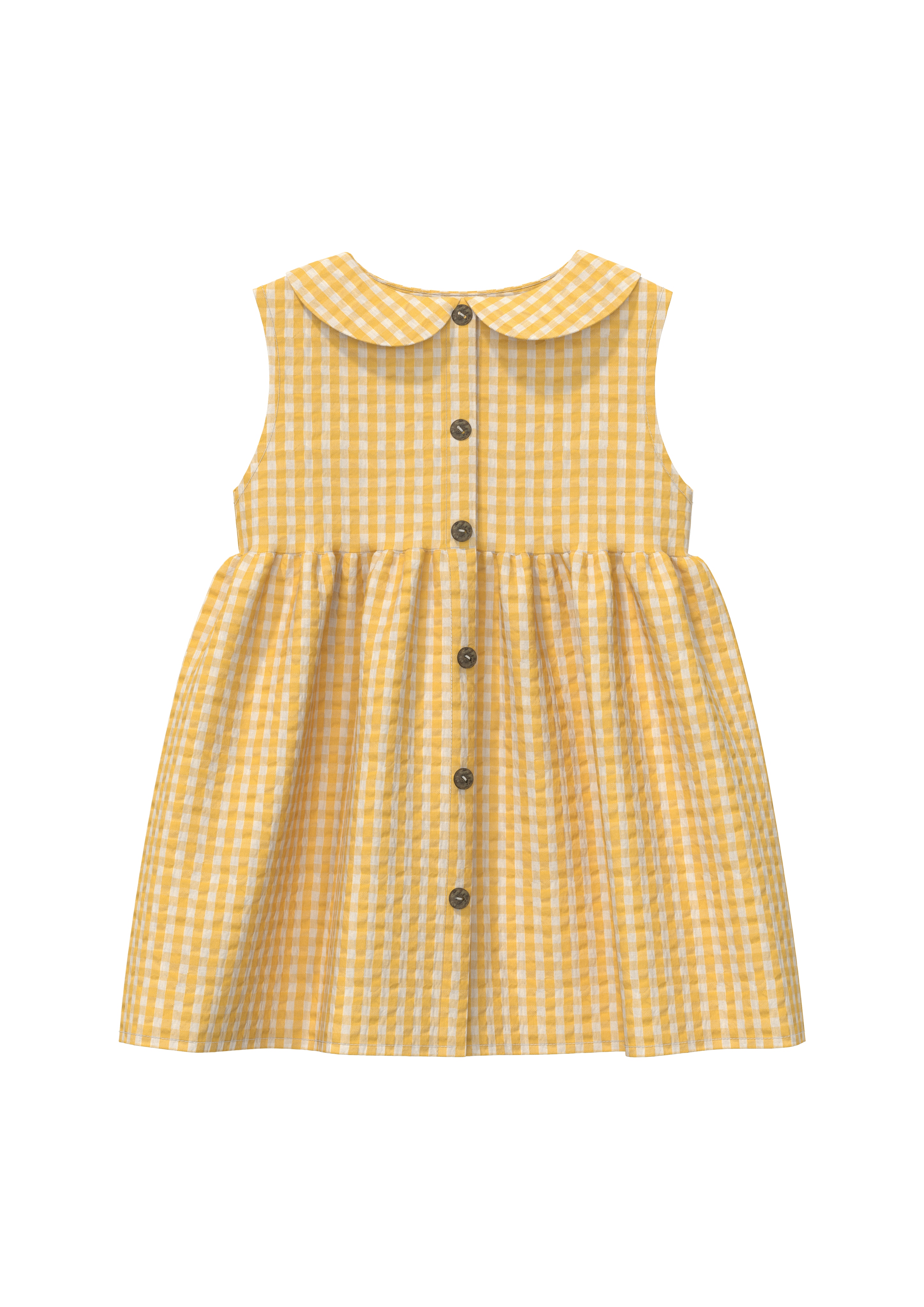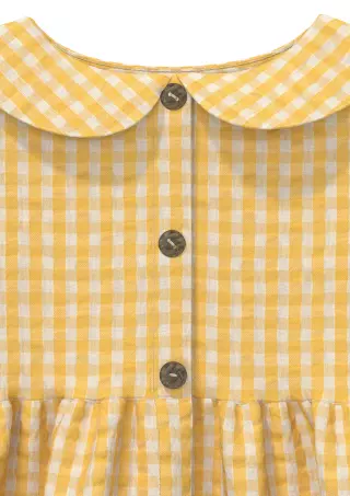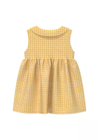 Adorable s.Oliver Baby check-pattern summer dress, perfect for warm days. This structured cotton dress with an integrated bodysuit features a charming check design and a sweet Peter Pan collar. A front button placket makes dressing easy, combining practicality with classic style for both everyday wear and special occasions. The sleeveless style and gently flared hem create a timeless, airy look.