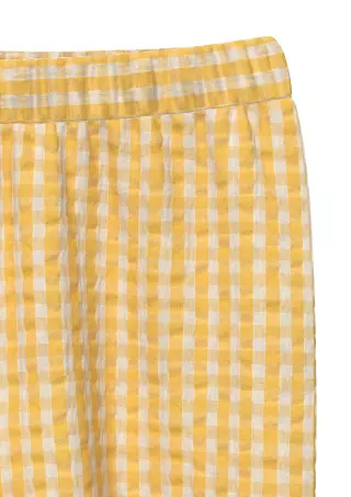 Adorable s.Oliver Baby check-pattern loose-fit cotton trousers, perfect for warm days. The elasticated waistband ensures a comfortable fit, while the lightweight fabric allows for excellent freedom of movement. Elasticated hems keep the trousers securely in place and add a practical touch. The classic check design makes them easy to style for both everyday wear and more special occasions.