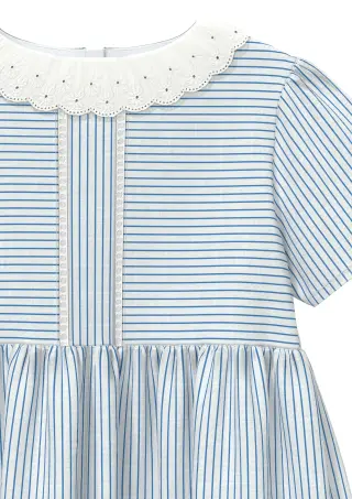 s.Oliver baby dress with beautiful striped design, lace collar and lovely short puff sleeves. Zipper fastening at the back.