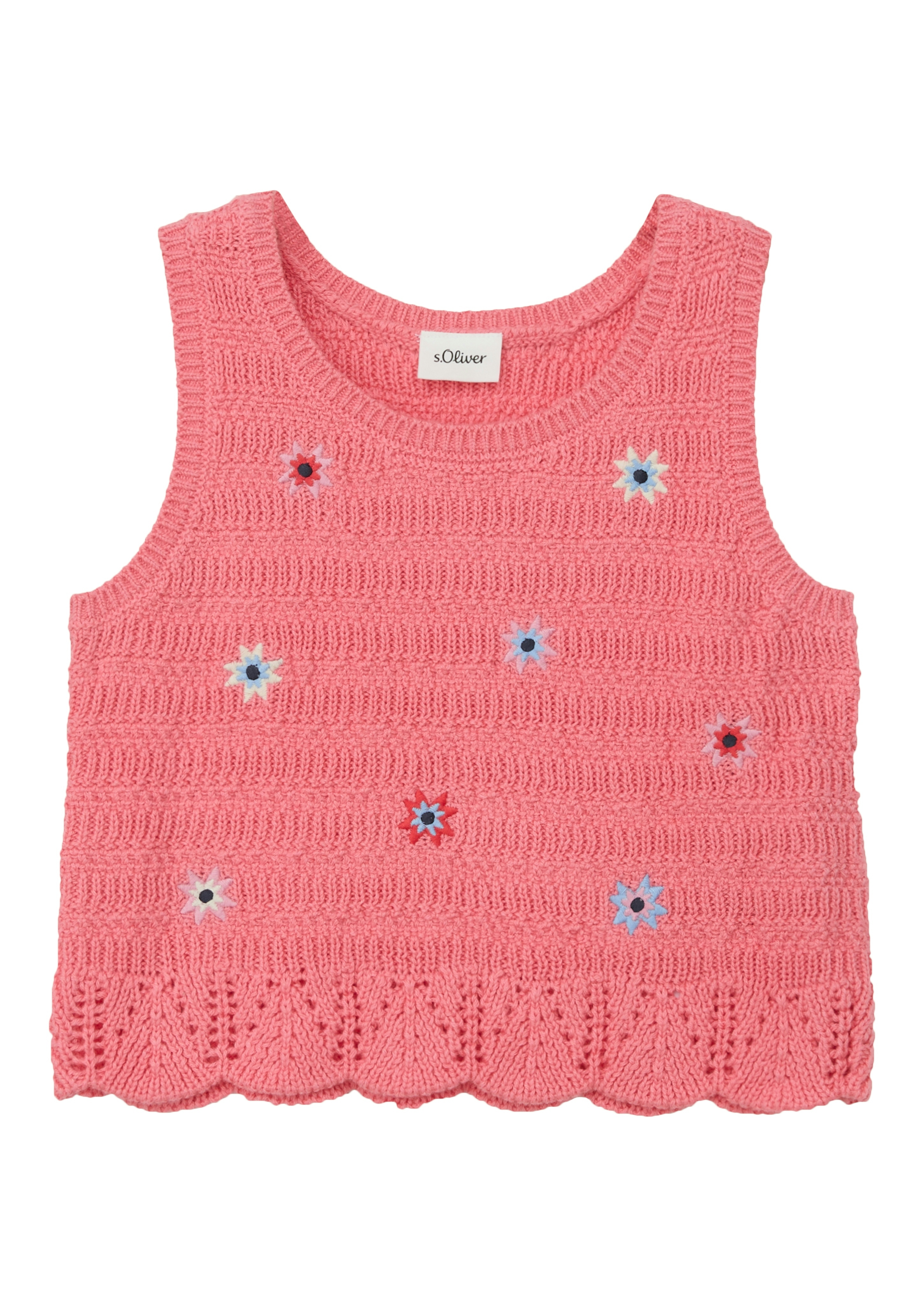 This charming s.Oliver knitted top is finished with beautiful floral embroidery, adding a soft and timeless touch to an everyday look. The comfortable cotton blend feels pleasant against the skin and offers good durability for regular wear. The knitted top is perfect for layering over a short- or long-sleeved top.