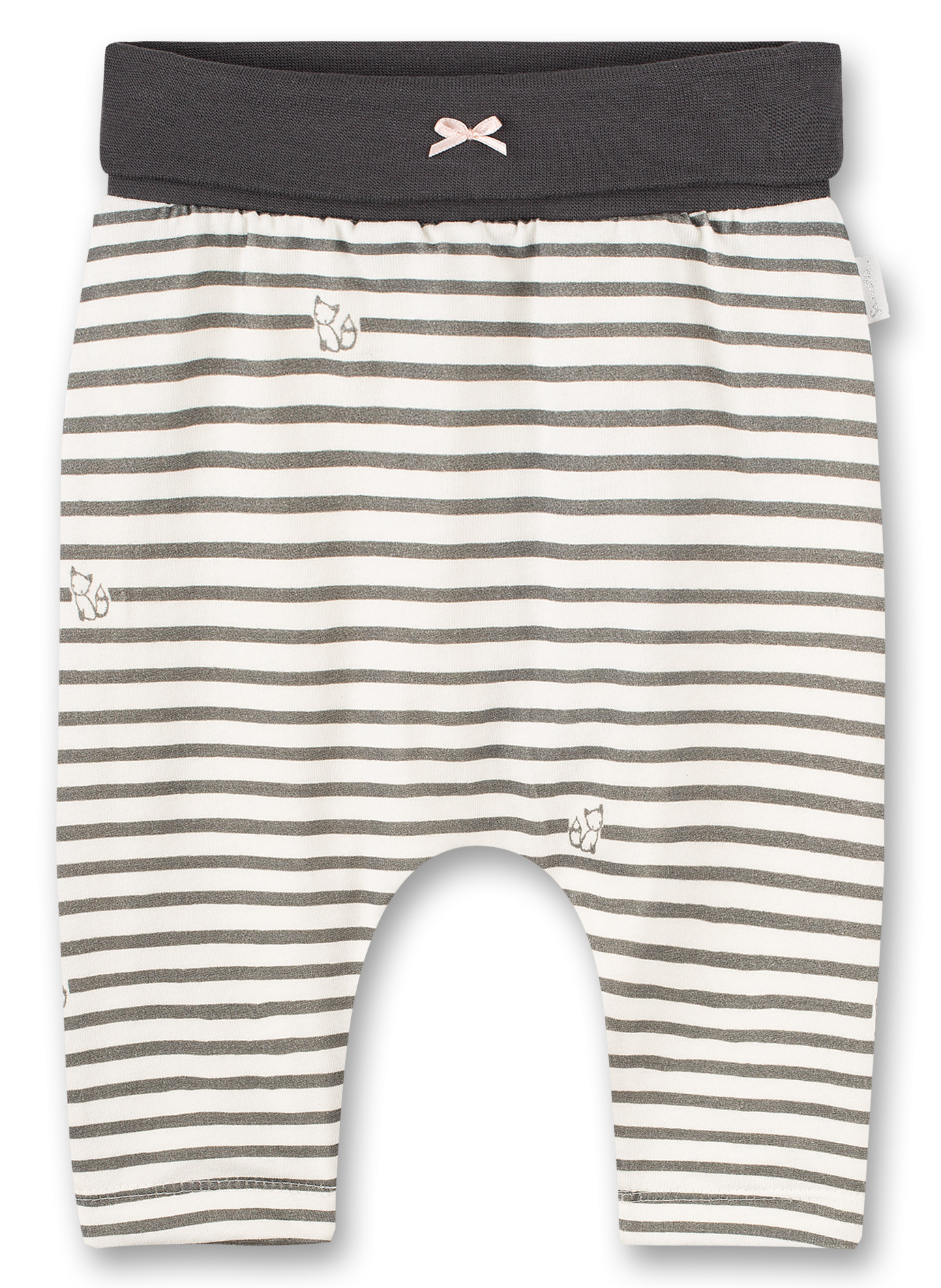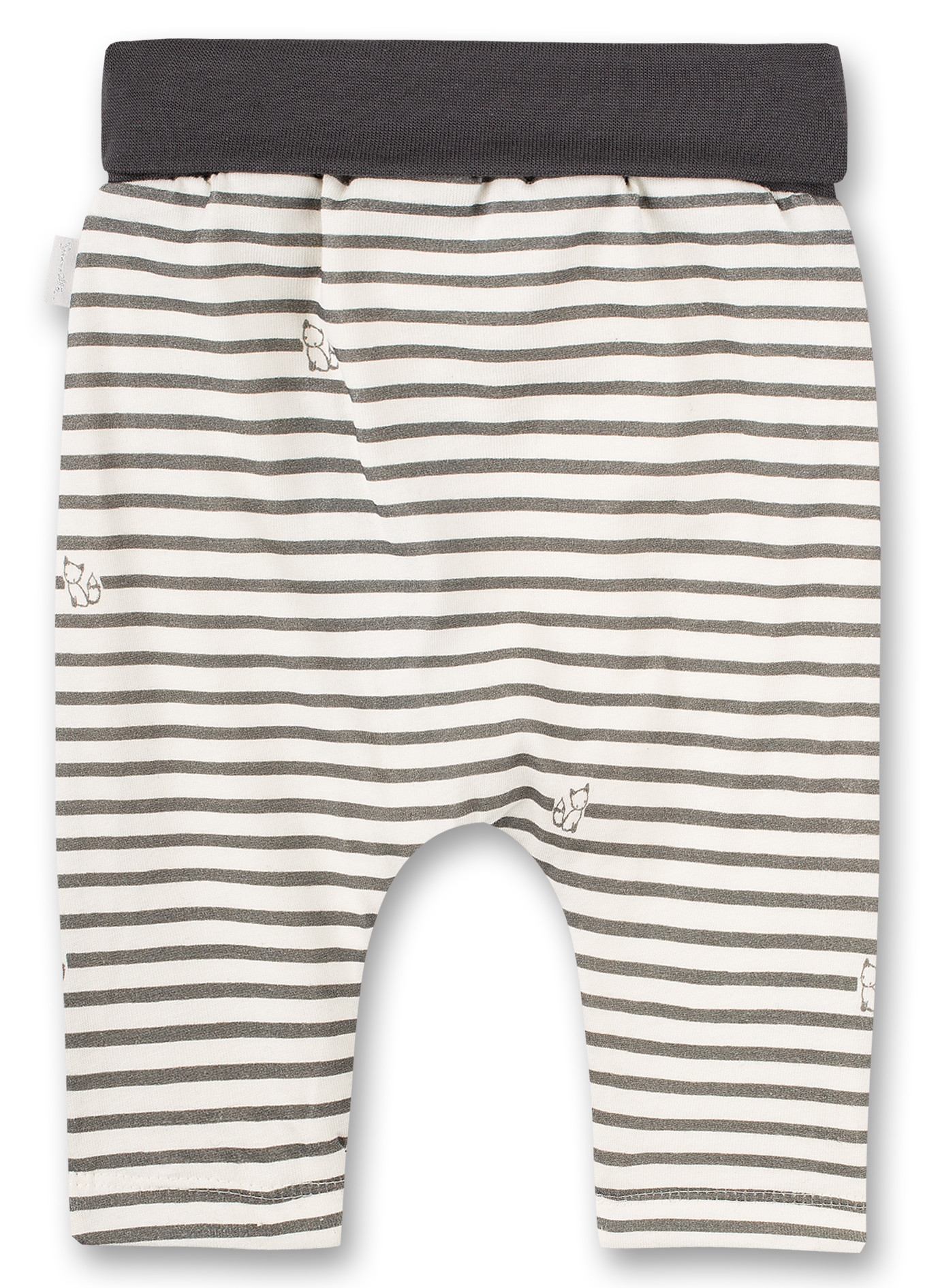 Lovely Sanetta baby pants for easy everyday wear! Made of soft organic cotton, these pants are comfortable to wear. Fun striped pattern, with foxes!