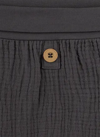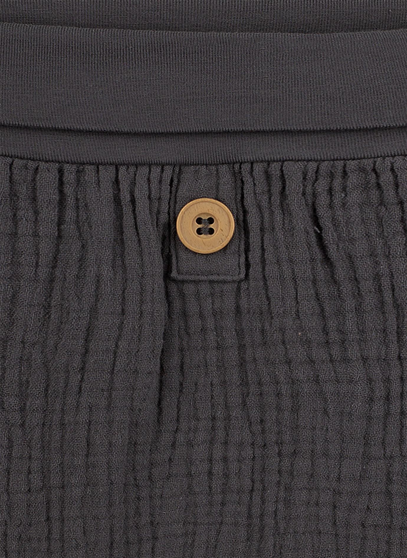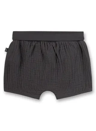 Cute and comfy Sanetta baby's shorts for easy everyday wear! Made of soft organic cotton, they are very comfortable to wear. The waist is stretchy and can be worn folded down or straight. The shorts have one wooden button at the front as a cute detail.
