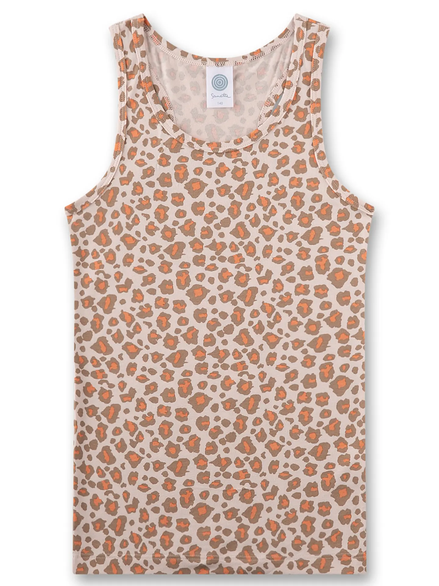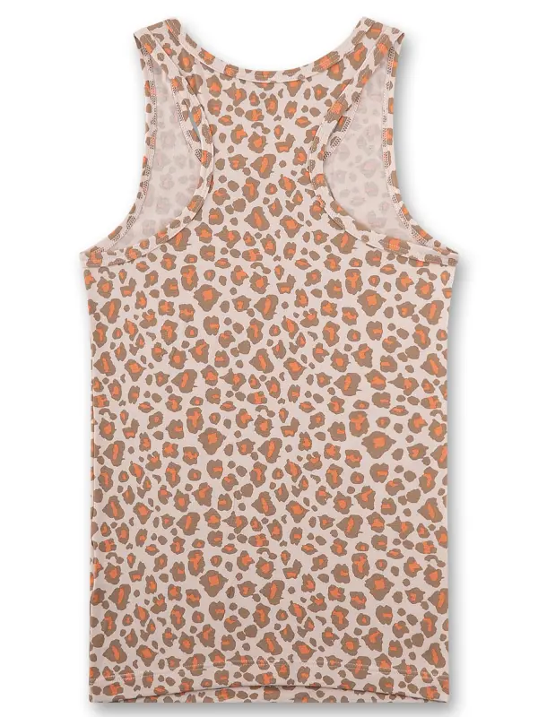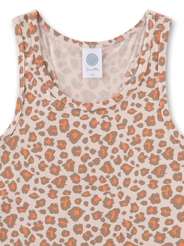 Sanetta undershirt in all-over leopard print combines warm brown and orange tones on a light background. Soft and light material feels comfortable on the skin and it's perfect for everyday use. The racerback design offers comfortable freedom of movement.