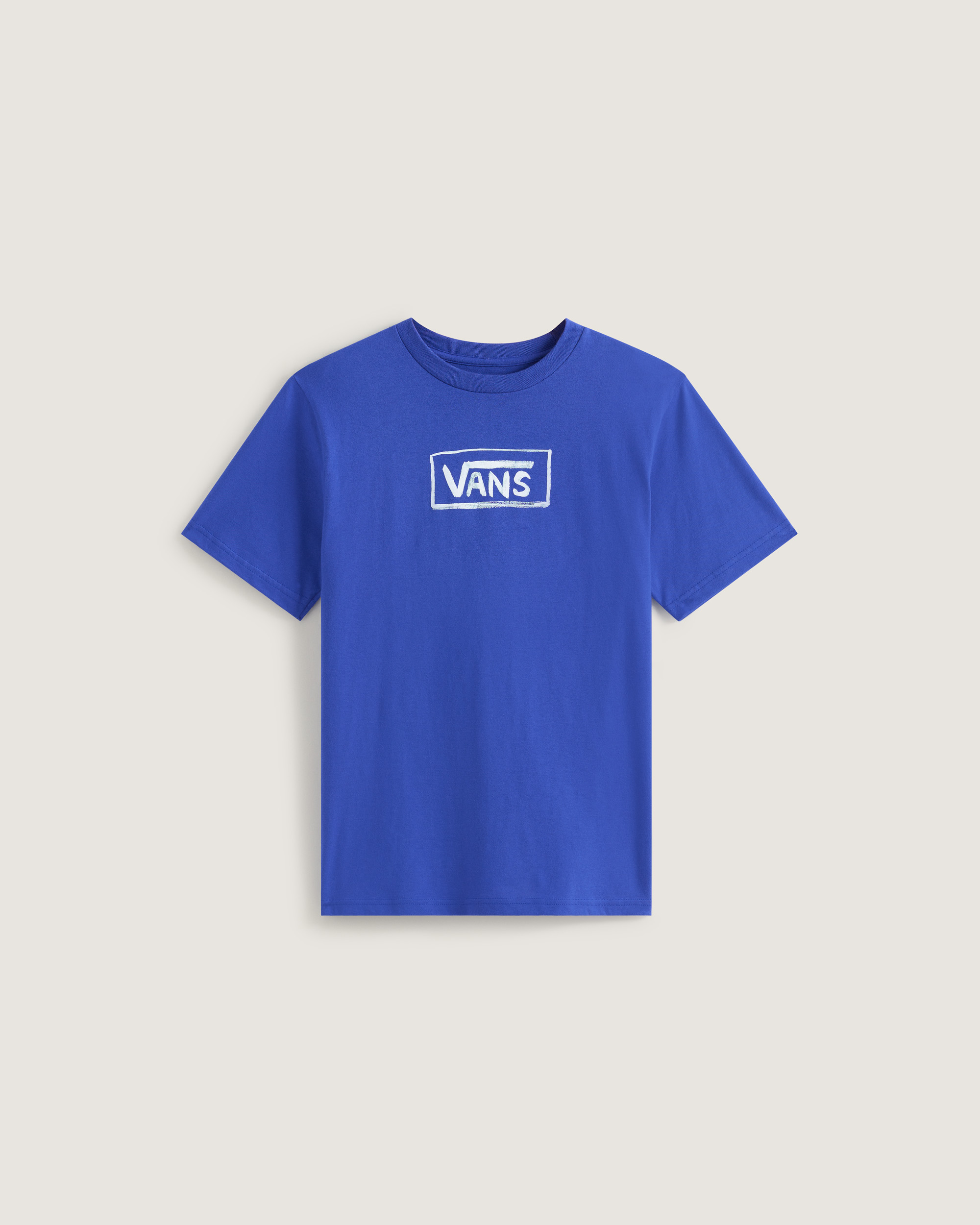 The VANS On Canvas T-shirt shows bold and iconic streetwear style. This blue-toned short-sleeved T-shirt is made from soft cotton and features a classic crew neckline. A subtle VANS logo graphic appears on the chest, while the back showcases a striking full-back “VANS, OFF THE WALL” text in a chalk-style design. A fun addition to a child’s wardrobe.