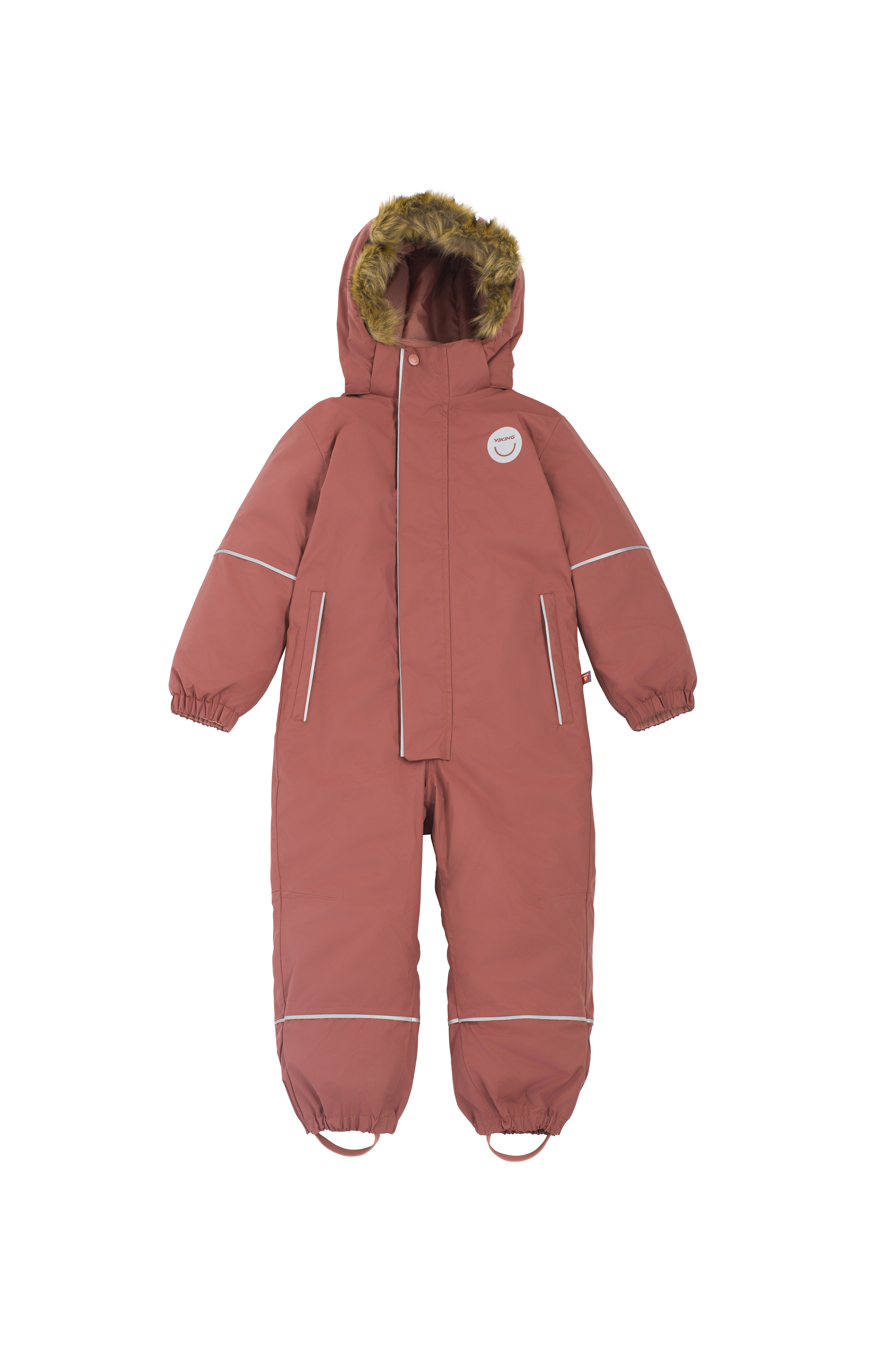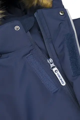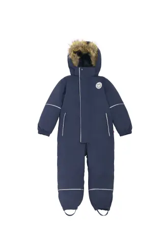 Viking Play, durable, waterproof, and insulated winter playsuit that keeps playtime warm and protected throughout the winter. The outer material is made of a strong recycled fabric and is equipped with several reflective elements for greater visibility in the dark. Taped seams and a Bionic Finish ECO treatment ensure lasting water repellency, and toasty insulation helps keep out the cold. A detachable faux fur trimmed hood combines with an adjustable waist and foot straps to ensure that everything stays in place.