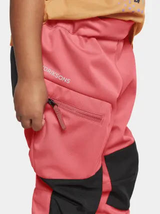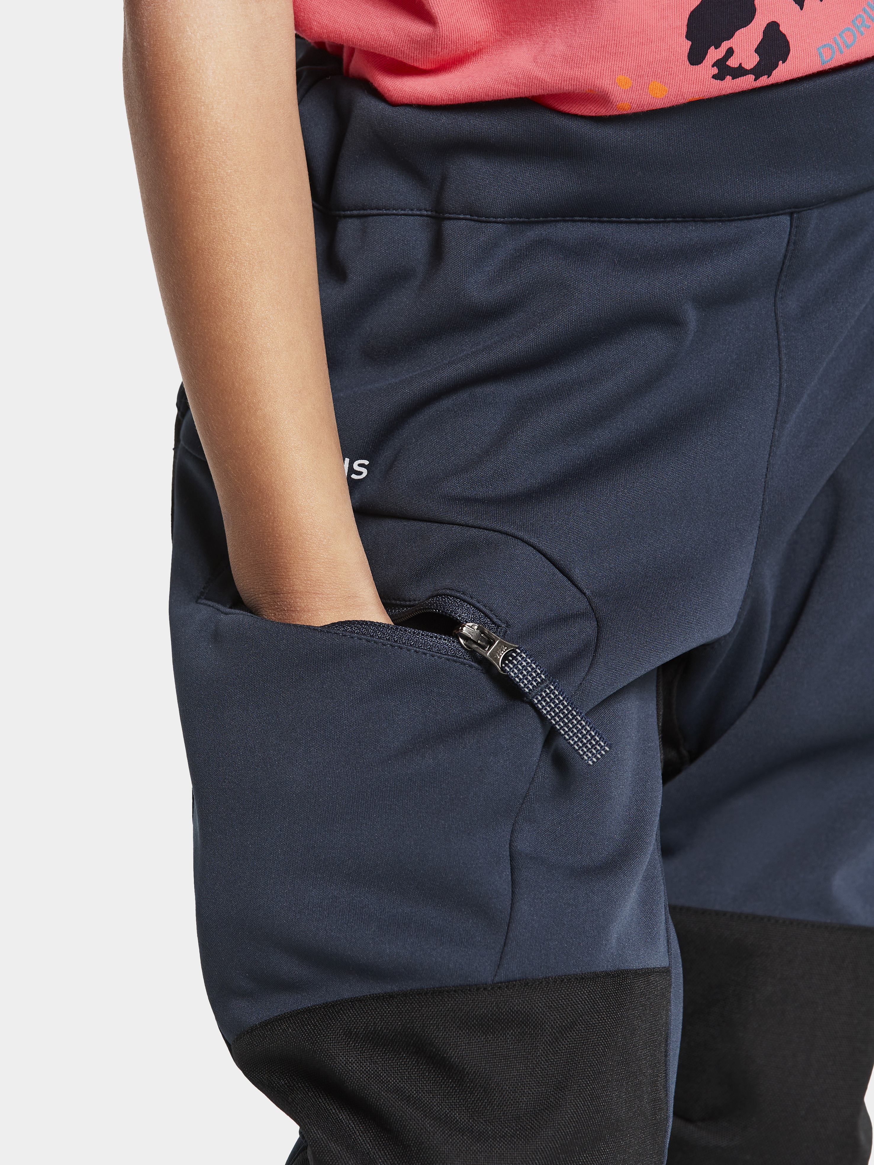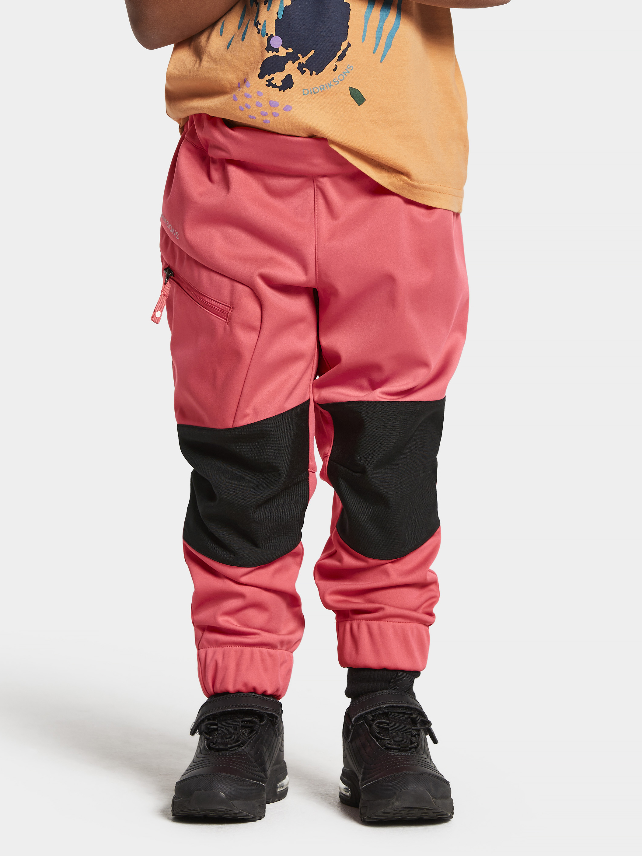 Didriksons Lövet housut ovat pehmeät, vettä hylkivät ja tuulenpitävät softshell housut ulkoleikkeihin. Housut ovat kevyen ja joustavan tuntuiset ja niissä on normaali istuvuus. Kestävät Cordura®-vahvikkeet polvien ja takapuolen kohdalla. Housuissa on joustava säädettävä vyötärö ja joustavat lahkeensuut. Vetoketjullinen tasku oikeassa lahkeessa.