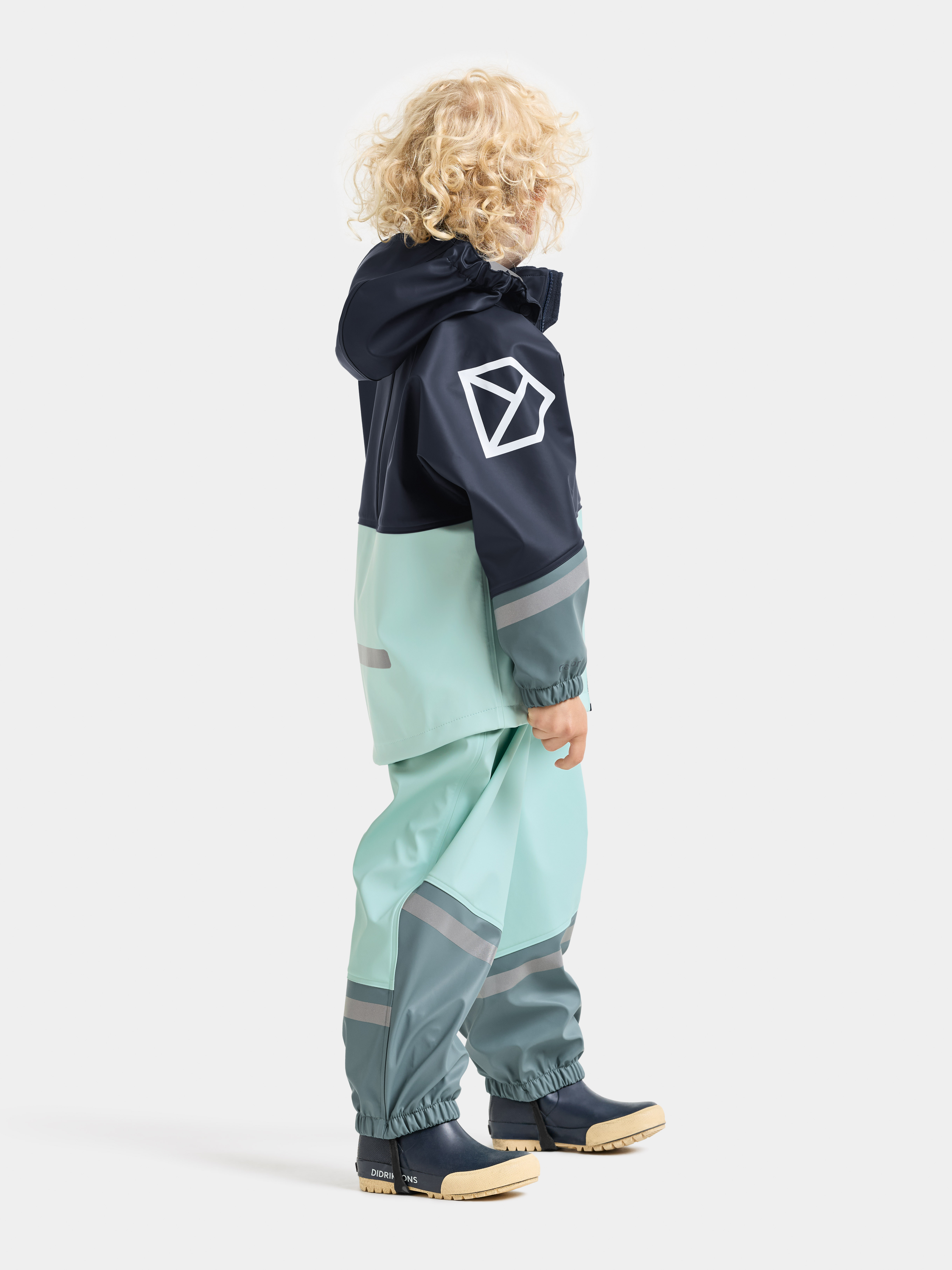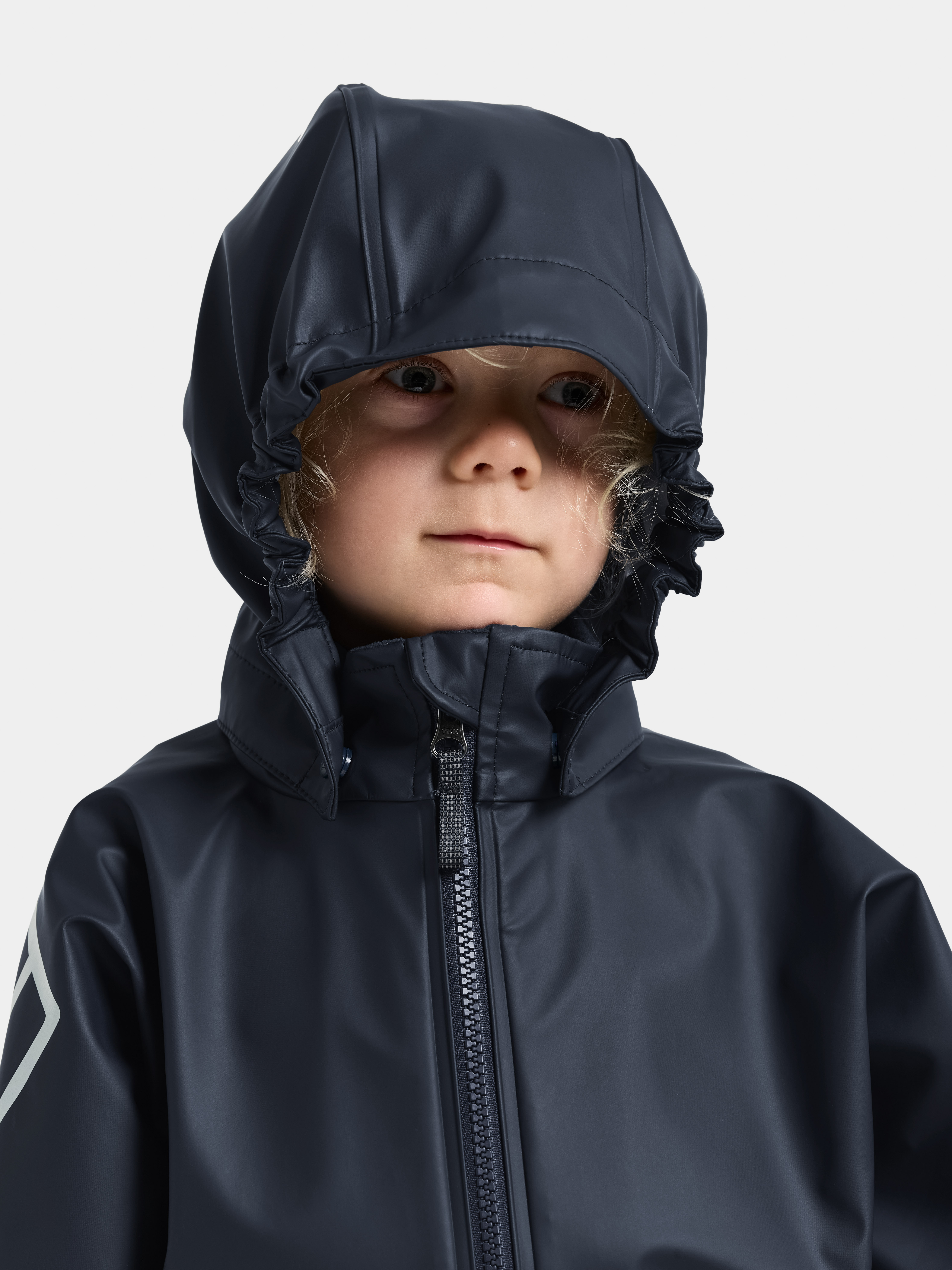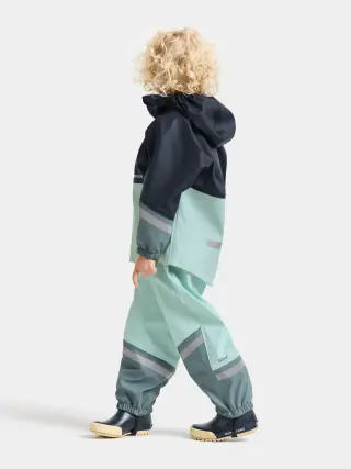Käytännöllinen ja suojaava lasten Didriksons Waterman sadeasu vaihteleviin sääolosuhteisiin. Tämä kuorivaate on suunniteltu pitämään tuuli ja kosteus ulkona, ja se sopii erinomaisesti rauhallisempaan ulkoiluun sekä arkipäivän käyttöön. Edessä oleva vetoketju tekee pukemisesta helppoa, ja irrotettava huppu joustavilla sivuilla tuo monipuolisuutta eri säätilanteisiin. Säädettävä helma kiristysnyörillä sekä joustavat hihansuut auttavat pitämään kylmyyden ulkopuolella. Joustavat lahkeensuut silikonisilla jalkalenkeillä pitävät vaatteen hyvin paikoillaan. Säädettävä nappivyötärö ja kiinteät, säädettävät henkselit takaavat hyvän istuvuuden kasvavalle lapselle. Heijastavat yksityiskohdat parantavat näkyvyyttä pimeässä, ja hihansuissa olevat hanskalenkit lisäävät käyttömukavuutta. Tämä kuorivaate ei sisällä lämpöä eristävää vuorta eikä ole hengittävä, joten se sopii parhaiten kevyempään käyttöön ja kerrospukeutumiseen ilman voimakasta fyysistä rasitusta.