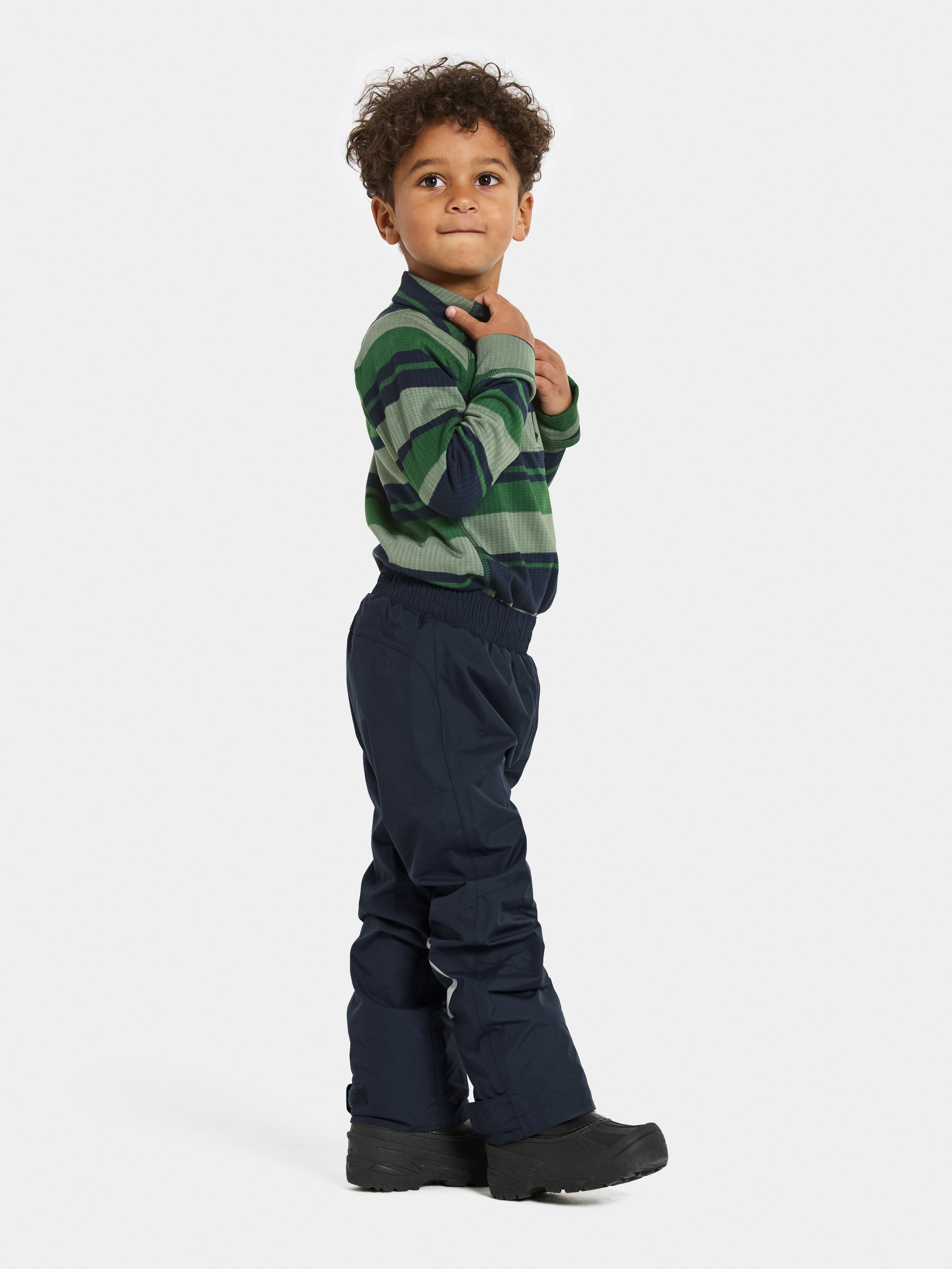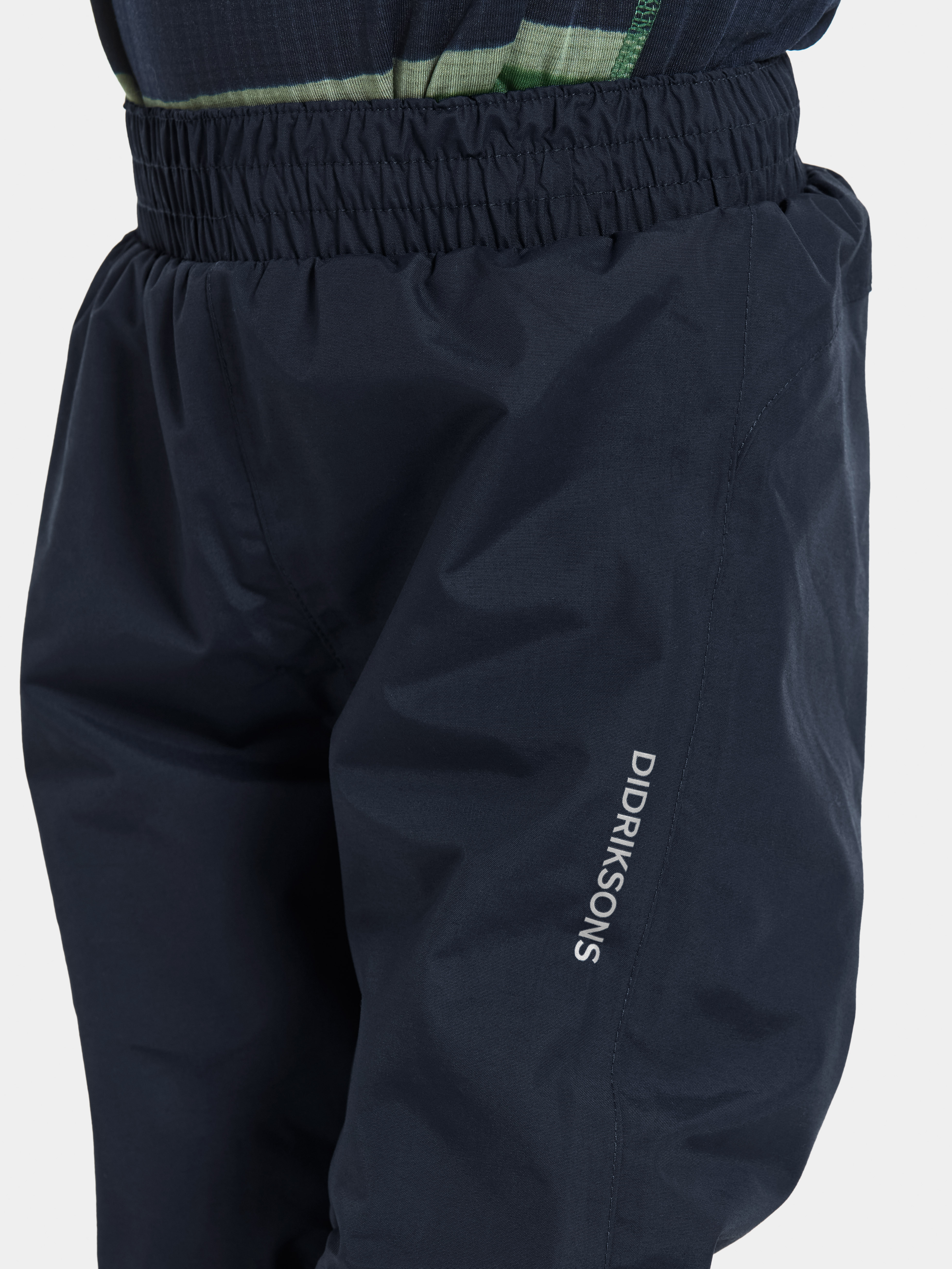 Didriksons välikausihousut Avan ovat luotettavat tuulen- ja vedenpitävät lasten kuorihousut aktiiviseen ulkoiluun säässä kuin säässä. Hengittävä materiaali ja teipatut saumat pitävät veden ulkopuolella samalla, kun kosteus ja ylimääräinen lämpö pääsevät haihtumaan. Joustava vyötärö säädettävällä kiristysnauhalla takaa hyvän istuvuuden leikin ja liikkumisen aikana. Lahkeensuiden tarrakiristys helpottaa leveyden säätöä, ja Extend Size -toiminto mahdollistaa lahkeiden pidentämisen yhdellä koolla lapsen kasvaessa. Heijastavat yksityiskohdat parantavat näkyvyyttä ja turvallisuutta hämärässä.