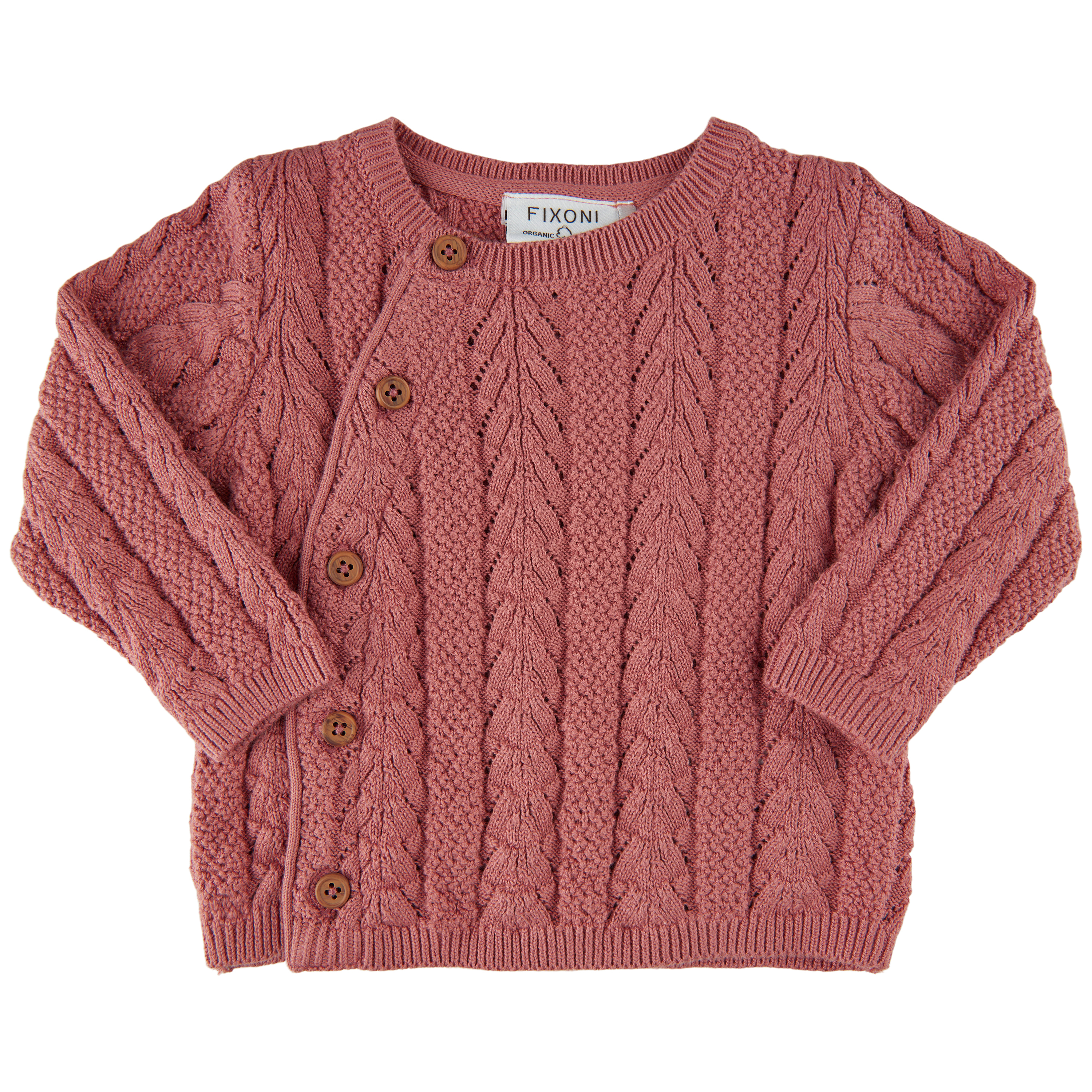 Fixonin ihana neuletakki kahdessa eri värissä. Yksityiskohtana kummassakin värissä kauniit puunapit. Pääntie on pyöreä ja joustavat resorit löytyy kaula-aukosta, hihoista ja helmasta.
