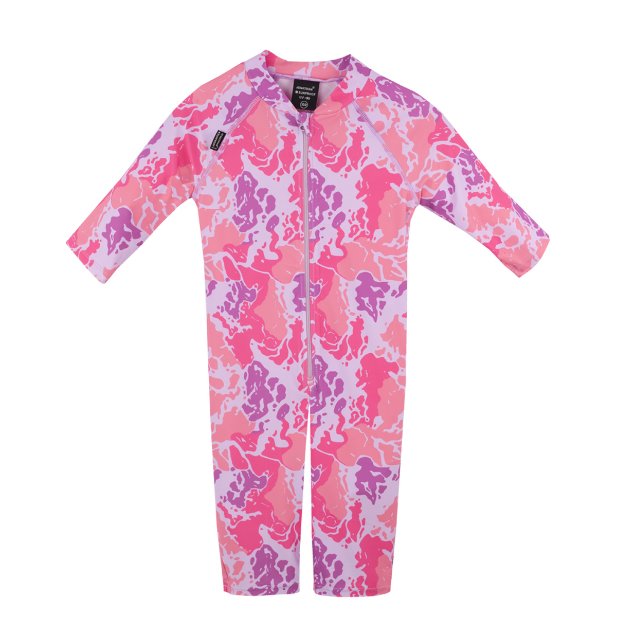 Jonathan lasten haalarimallinen aurinkosuoja uimapuku hauskan värikkäällä kuosilla.