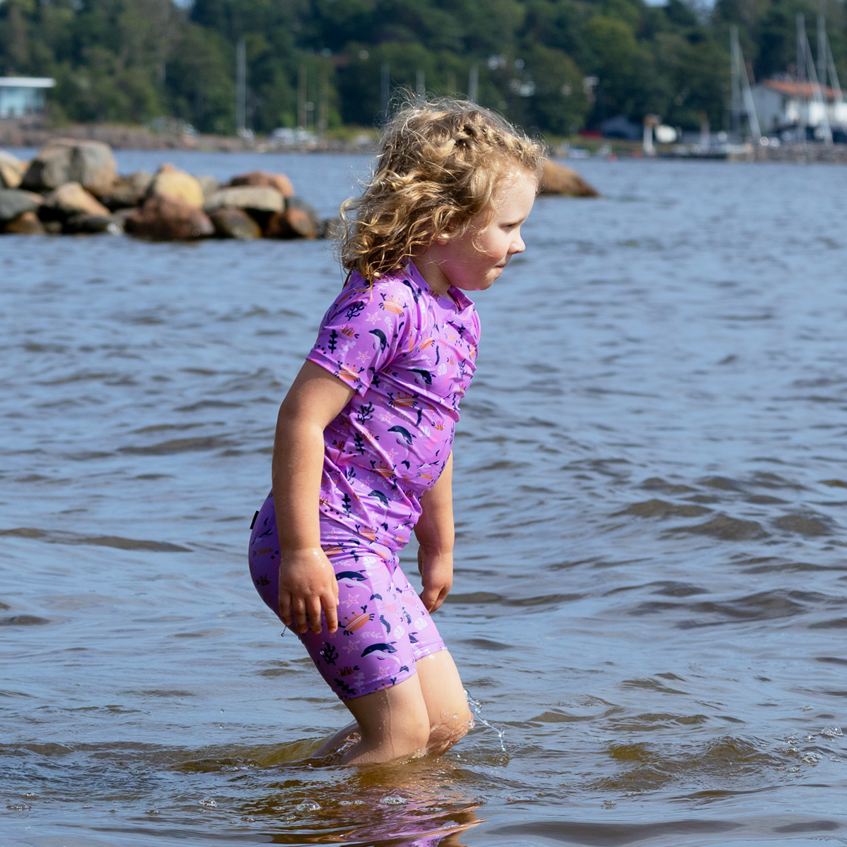 Jonathan aurinkosuoja shortsit hauskalla kuosilla. Nappikiristys vyötäröllä.