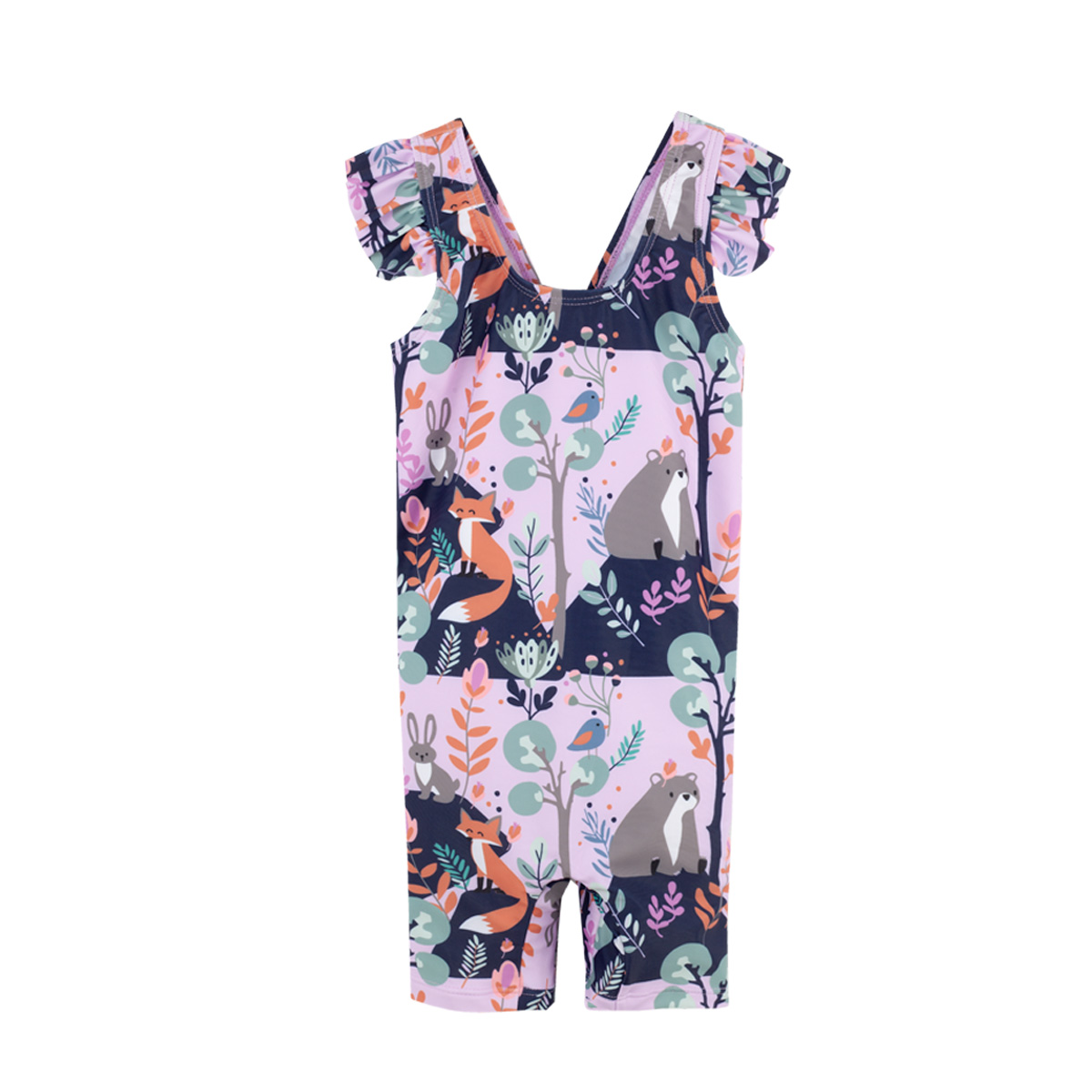 Jonathan aurinkosuoja uimapuku suloisilla röyhelöolkaimilla ja hauskalla kuosilla.