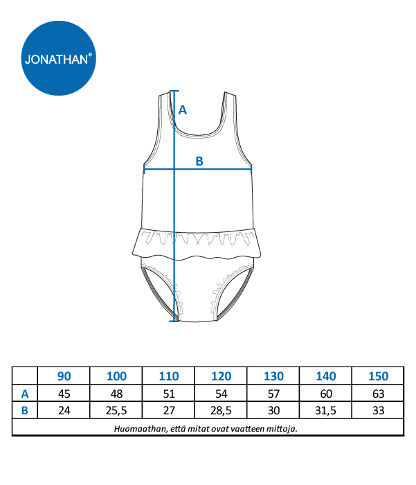 Jonathan sunproof-tuotteet valmistetaan erittäin joustavasta trikoosta ja tuotteen +50 suojakerroin antaa 50-kertaisen aurinkosuojan ja suodattaa jopa 98% haitallisista UV-säteistä. Materiaali on miellyttävän viileä ihoa vasten ja aurinkosuoja toimii myös tuotteen ollessa märkänä.